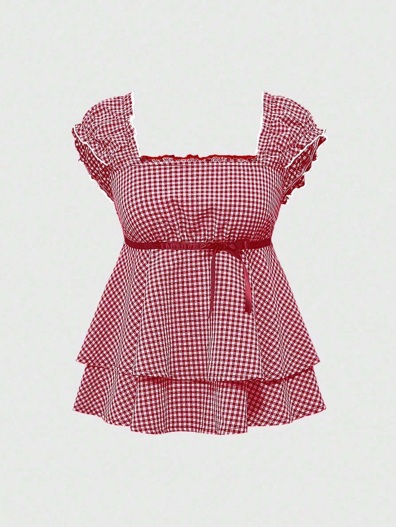 Kawaii Camisa cuadrada con cuello de lazo y línea A inocente y linda para adolescentes
