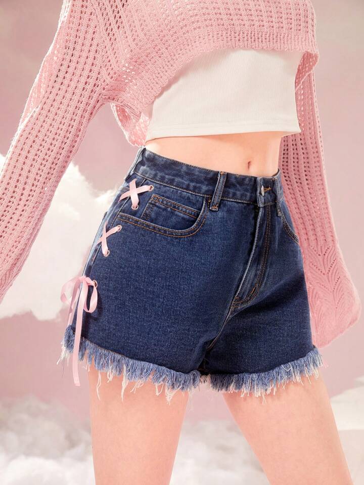 Kawaii Shorts en mezclilla con cordón bajo crudo
