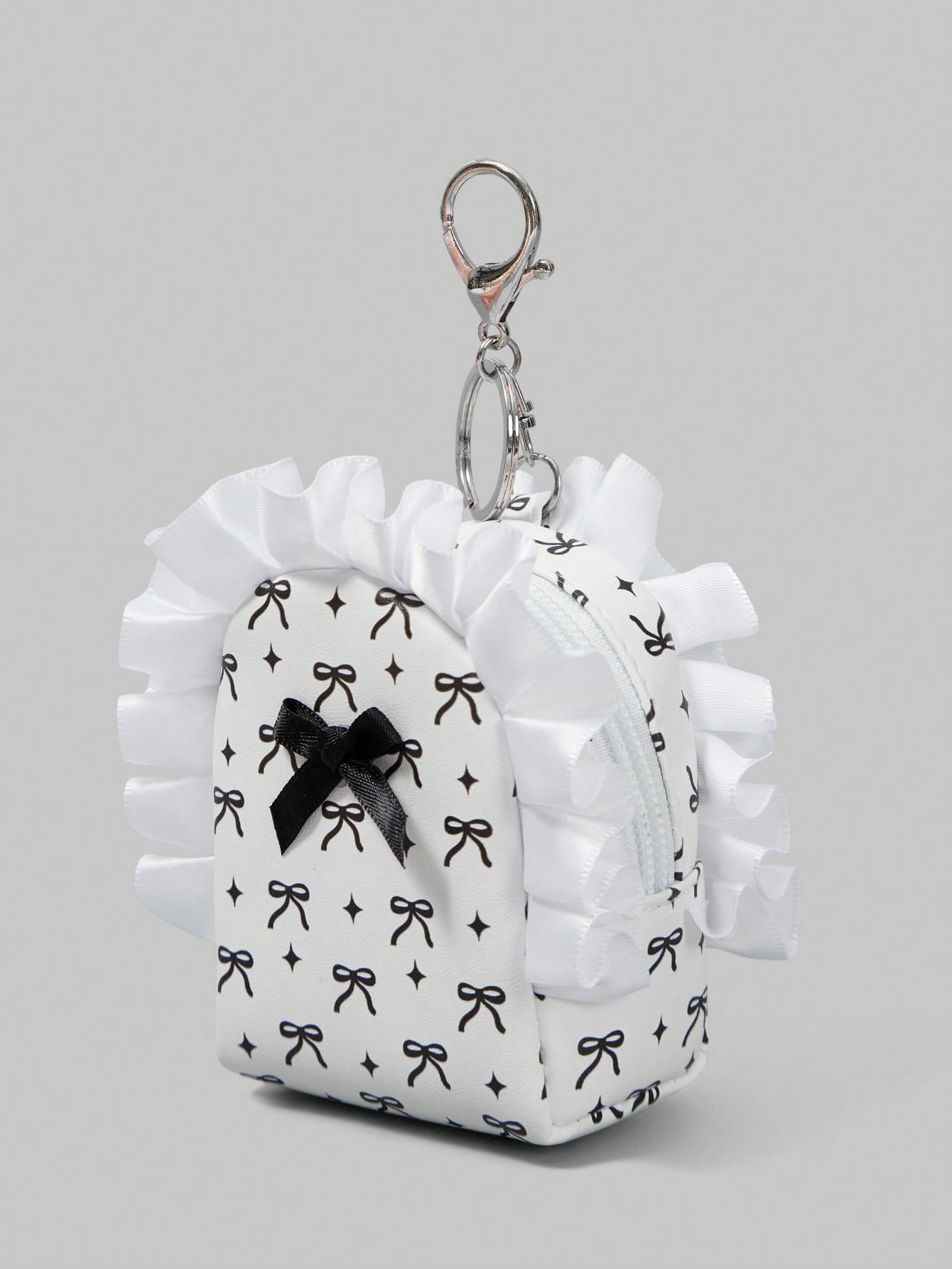 Kawaii Monedero portátil con estampado de lazo y flores de gran capacidad y color negro