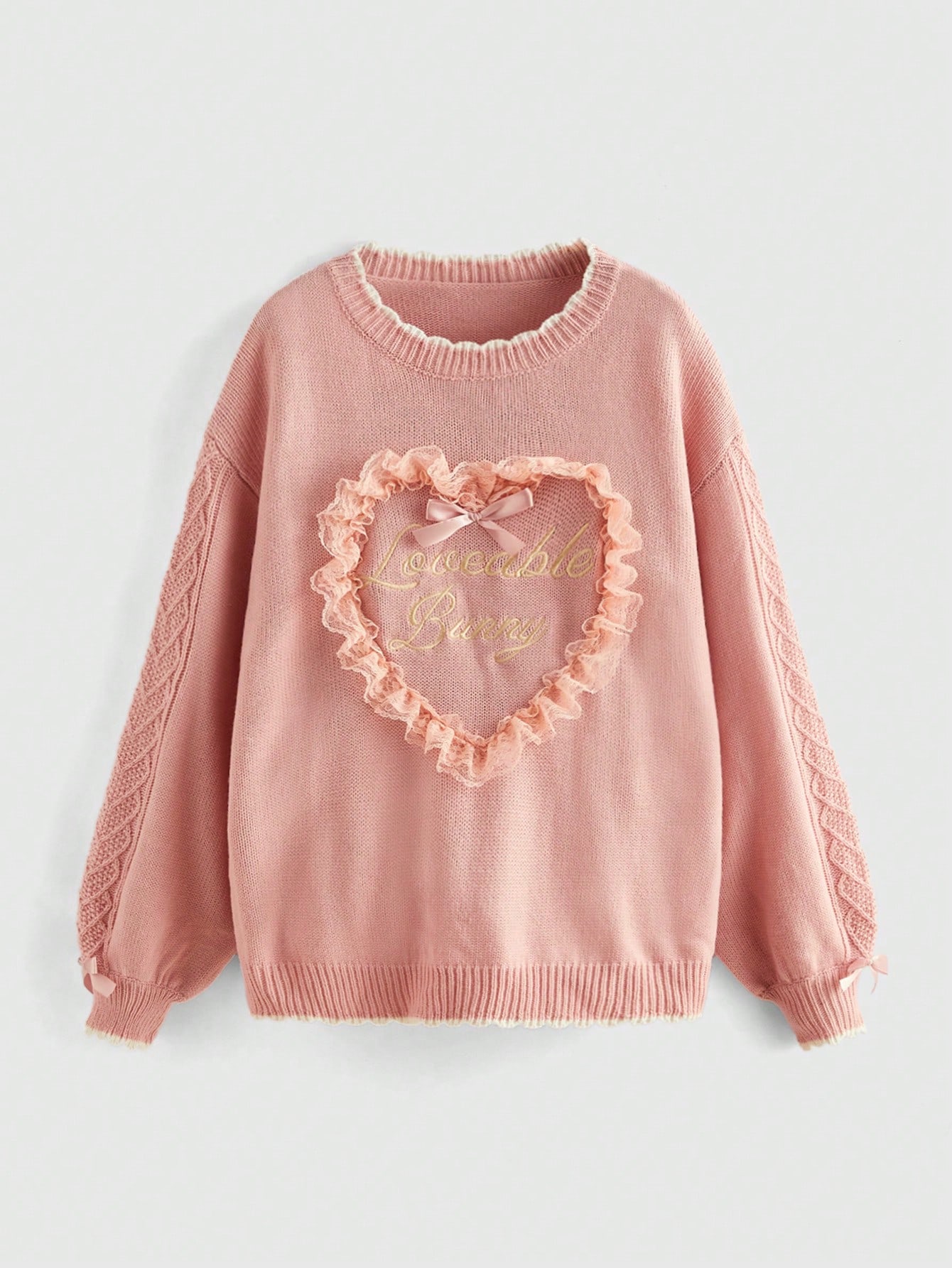 Kawaii Jersey Con Hombreras Caídas, Detalles De Volantes Y Bordado De Letras