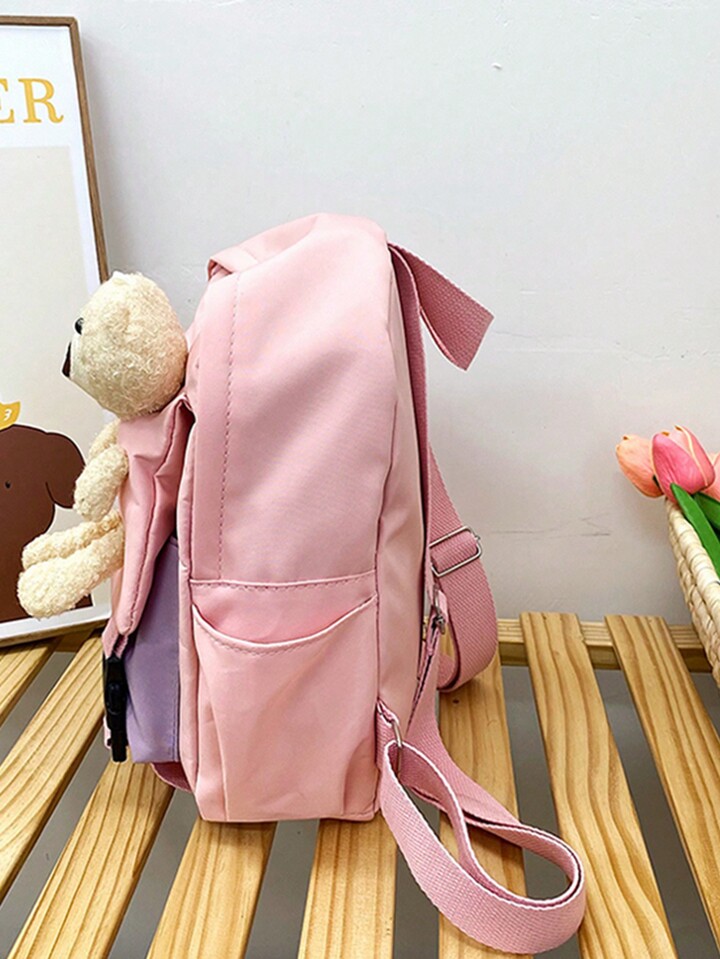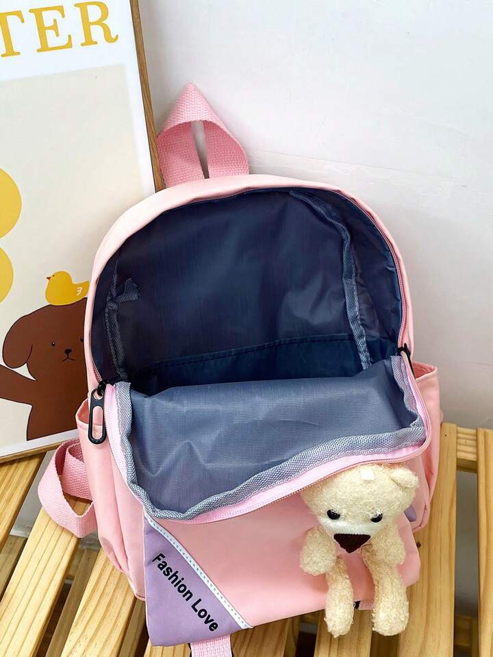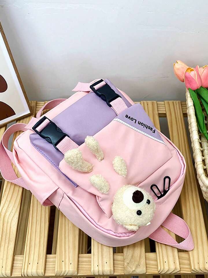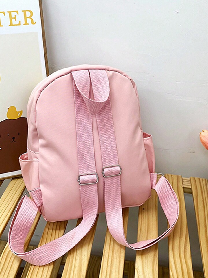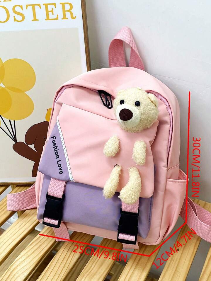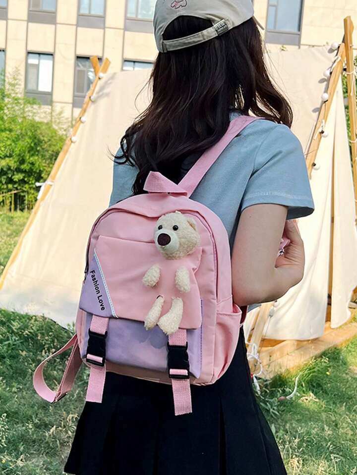 Kawaii Mochila medio dulce con letra con diseño de oso de dibujos animados con cremallera para alumno
