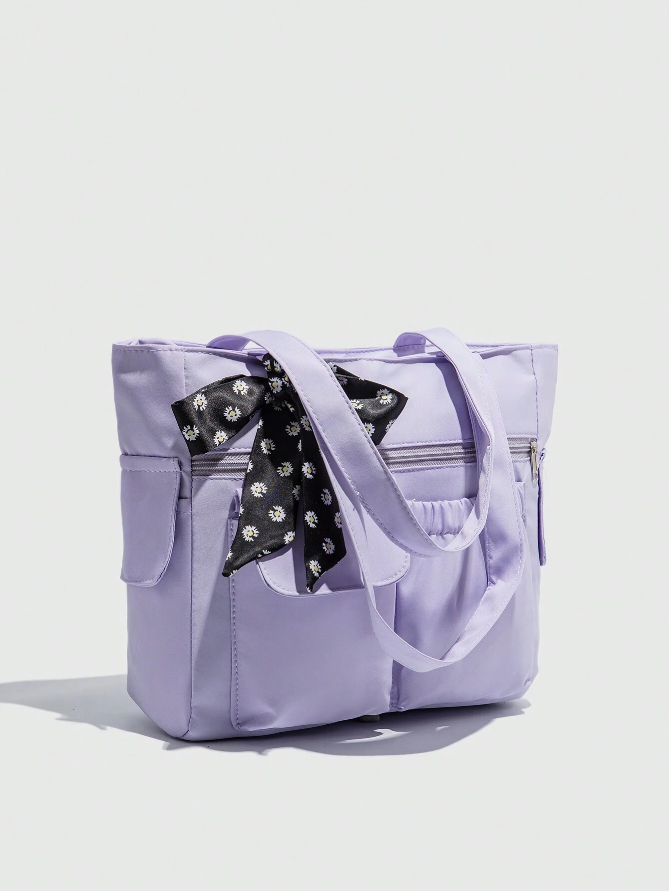 Kawaii Bolso de tela grande con múltiples bolsillos, de color liso, sencillo y ligero, apto para laptop