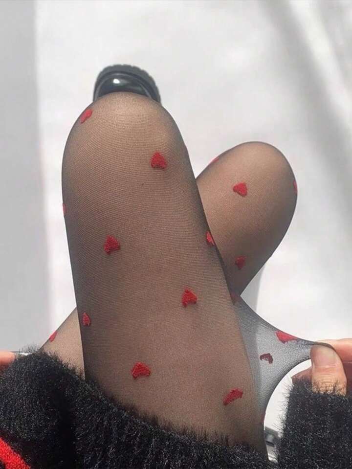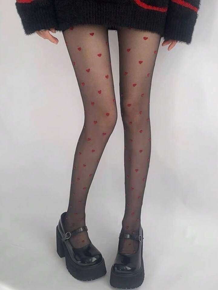 Kawaii Un par de medias de nylon con patrón de corazones para atuendos de fiesta y reunión.