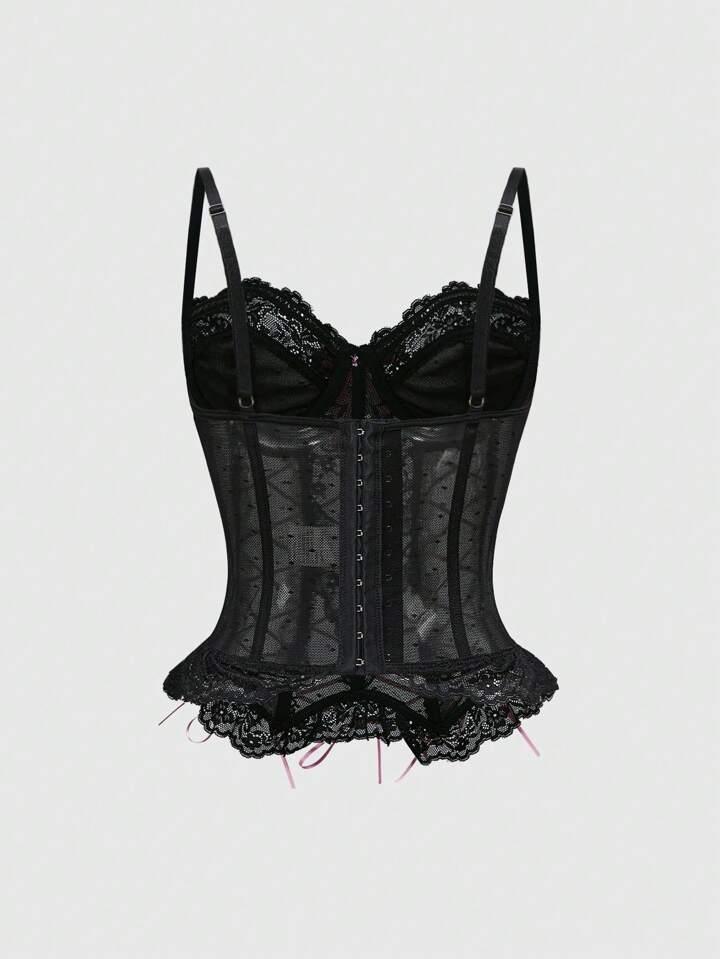 Kawaii Top de tirantes con lazo, estilo punk, cruzados y con encaje para mujeres