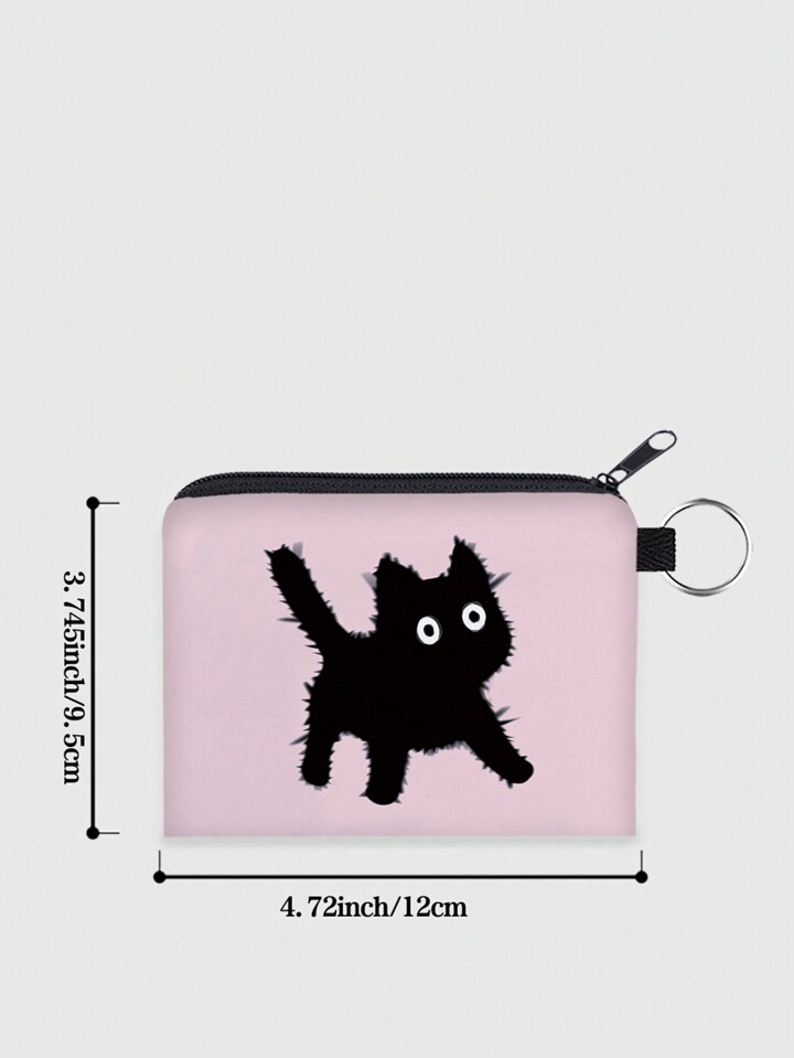 Kawaii Monedero con cremallera de poliéster con estampado de gato rosa, billetera de monedas para mujer, regalo para vacaciones