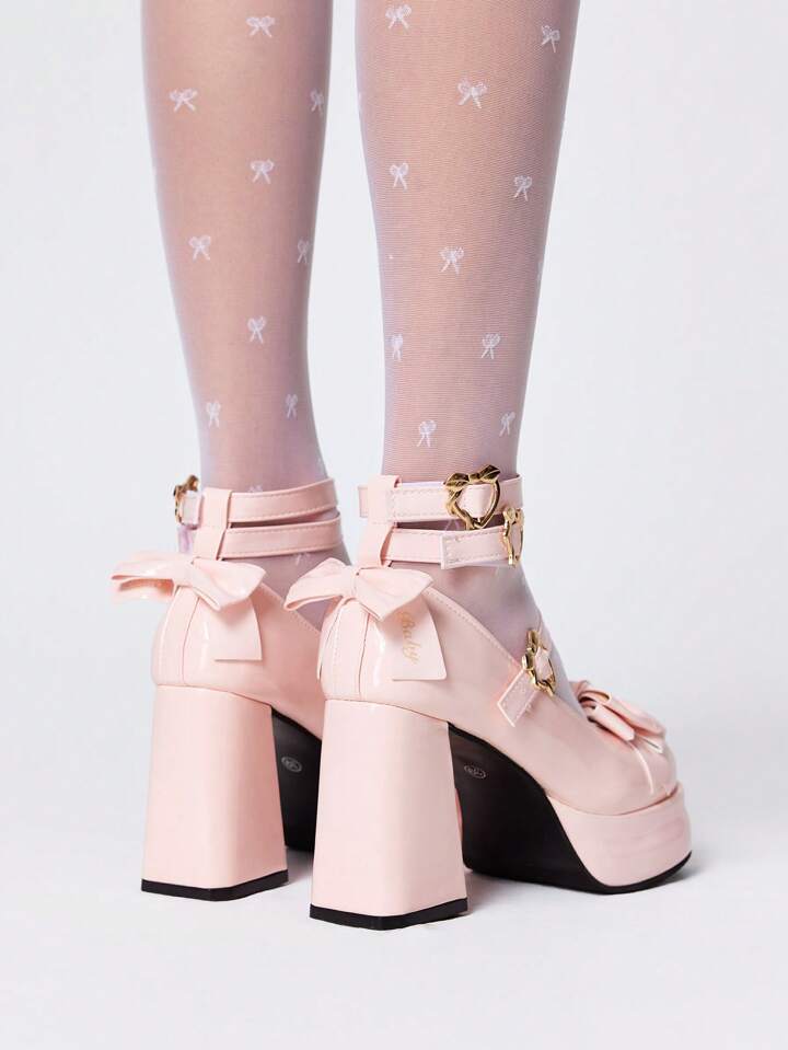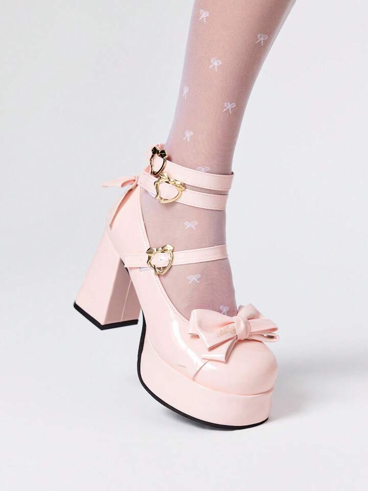 Kawaii Zapatos de tacón alto cerrados de tipo Mary Jane de color rosa con hebilla, estilo plataforma gótico dulce Lolita para mujer