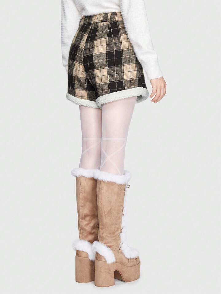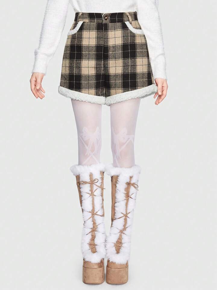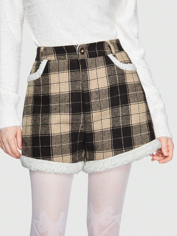 Kawaii Shorts con patrón de cuadros panel teddy