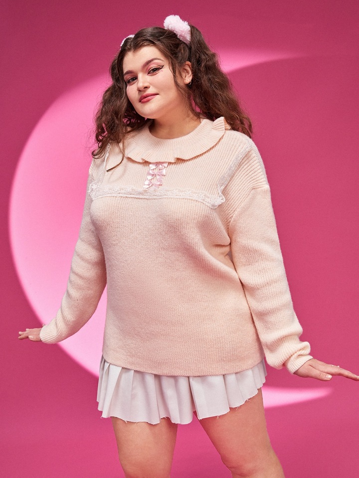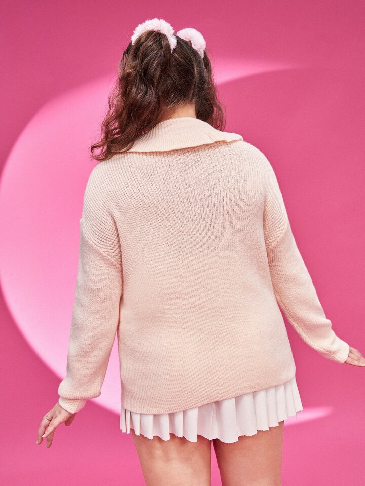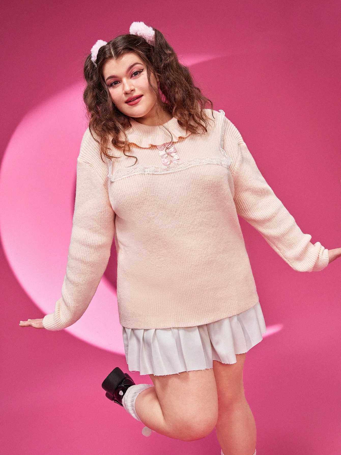 Kawaii Jersey con diseño de lazo fruncido de hombros caídos