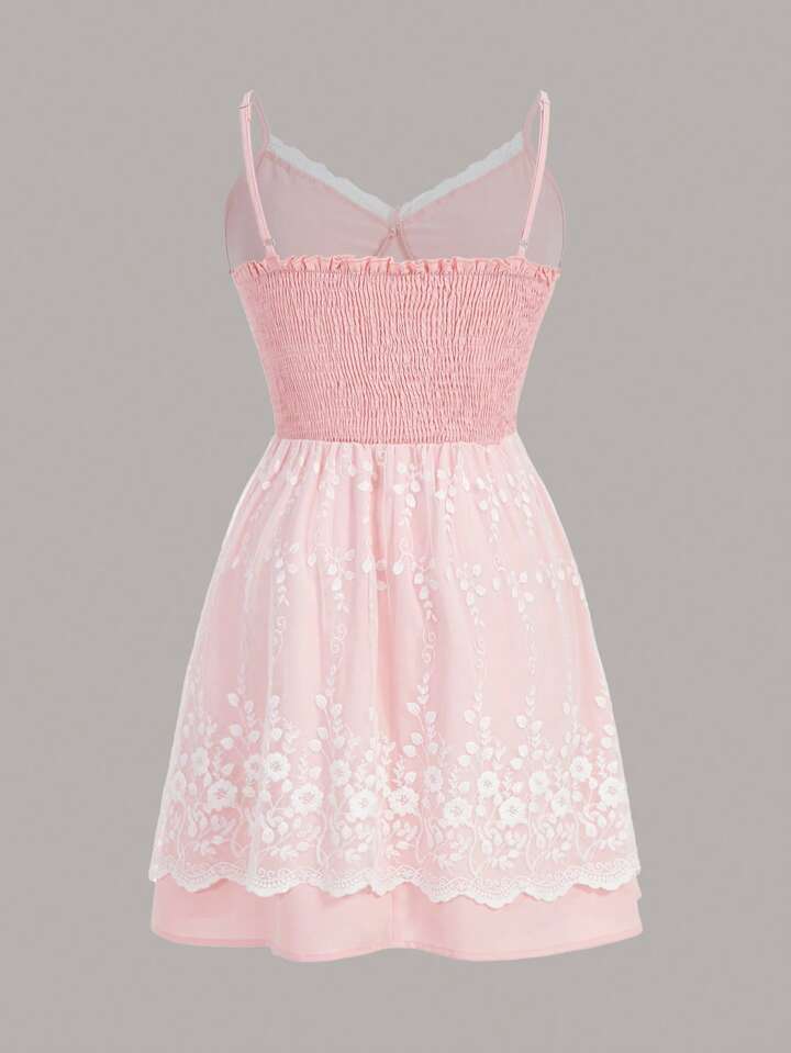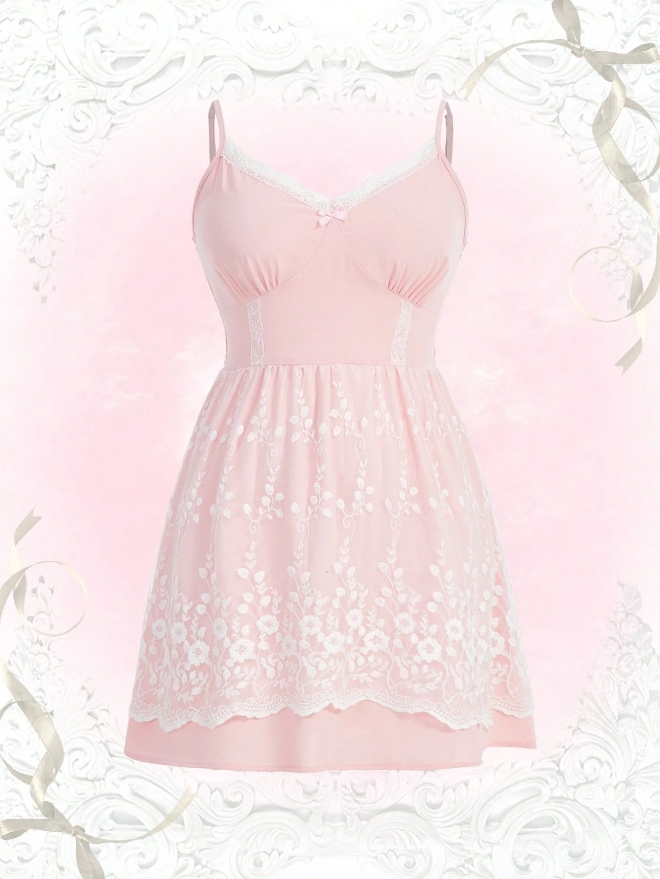 Kawaii Talla grande Vestido de tirantes con encaje en contraste