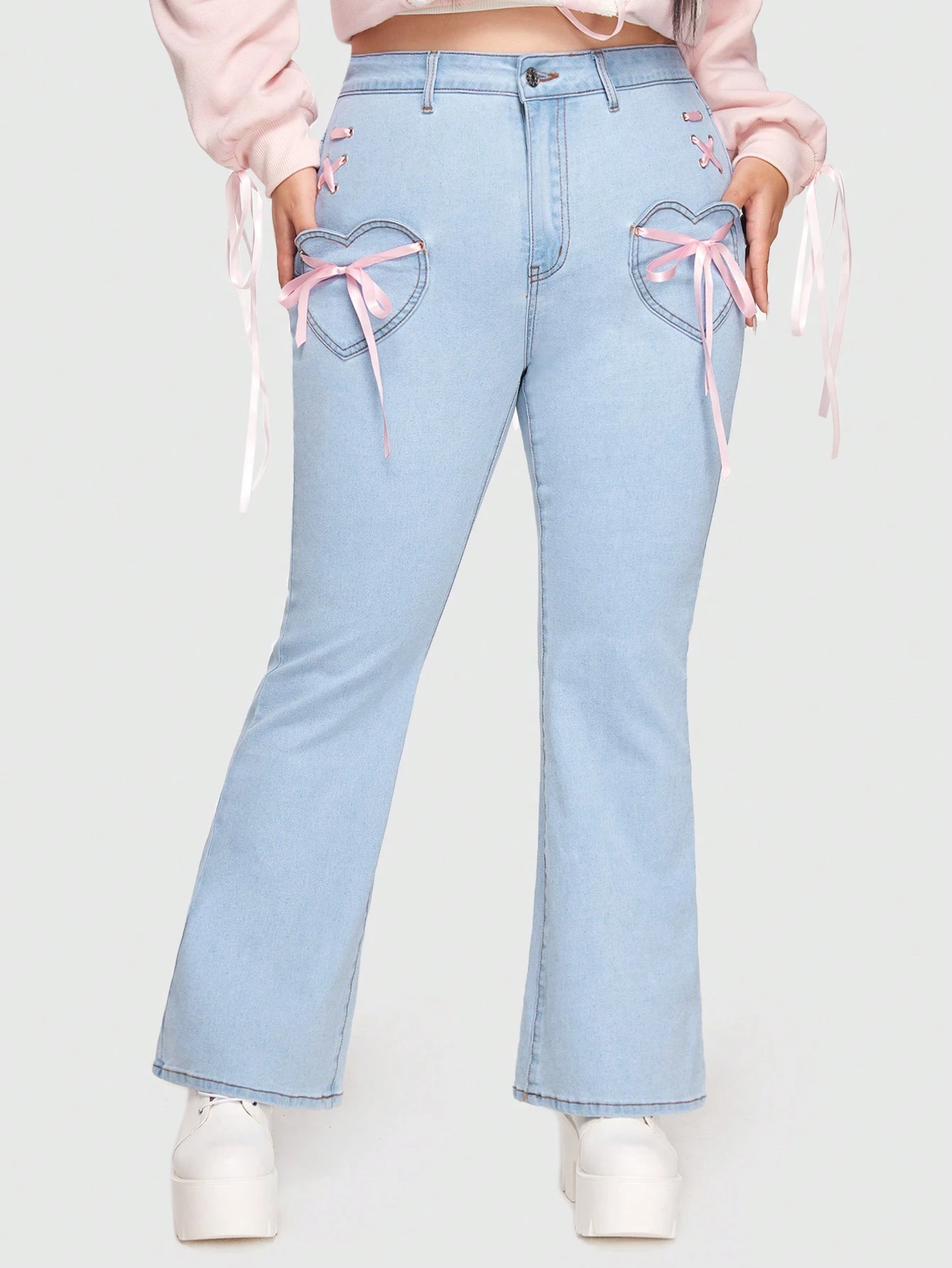 Kawaii Talla grande Jeans de pierna amplia con cordón delantero