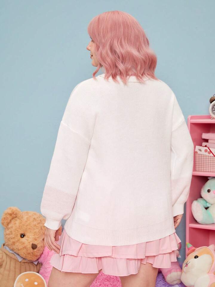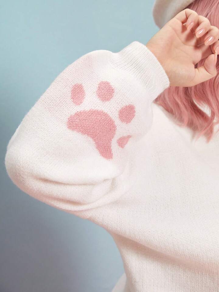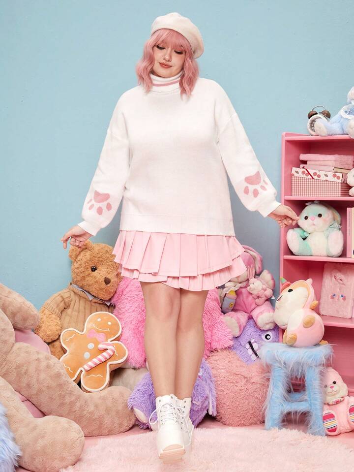 Kawaii Talla grande Jersey pata patrón de cuello tortuga de hombros caídos