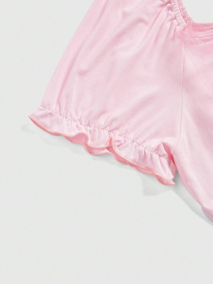 Kawaii Bodysuit Tallas Grandes Con Detalle De Cruz Y Pedrería, Lazo De Organza, Mangas Puff