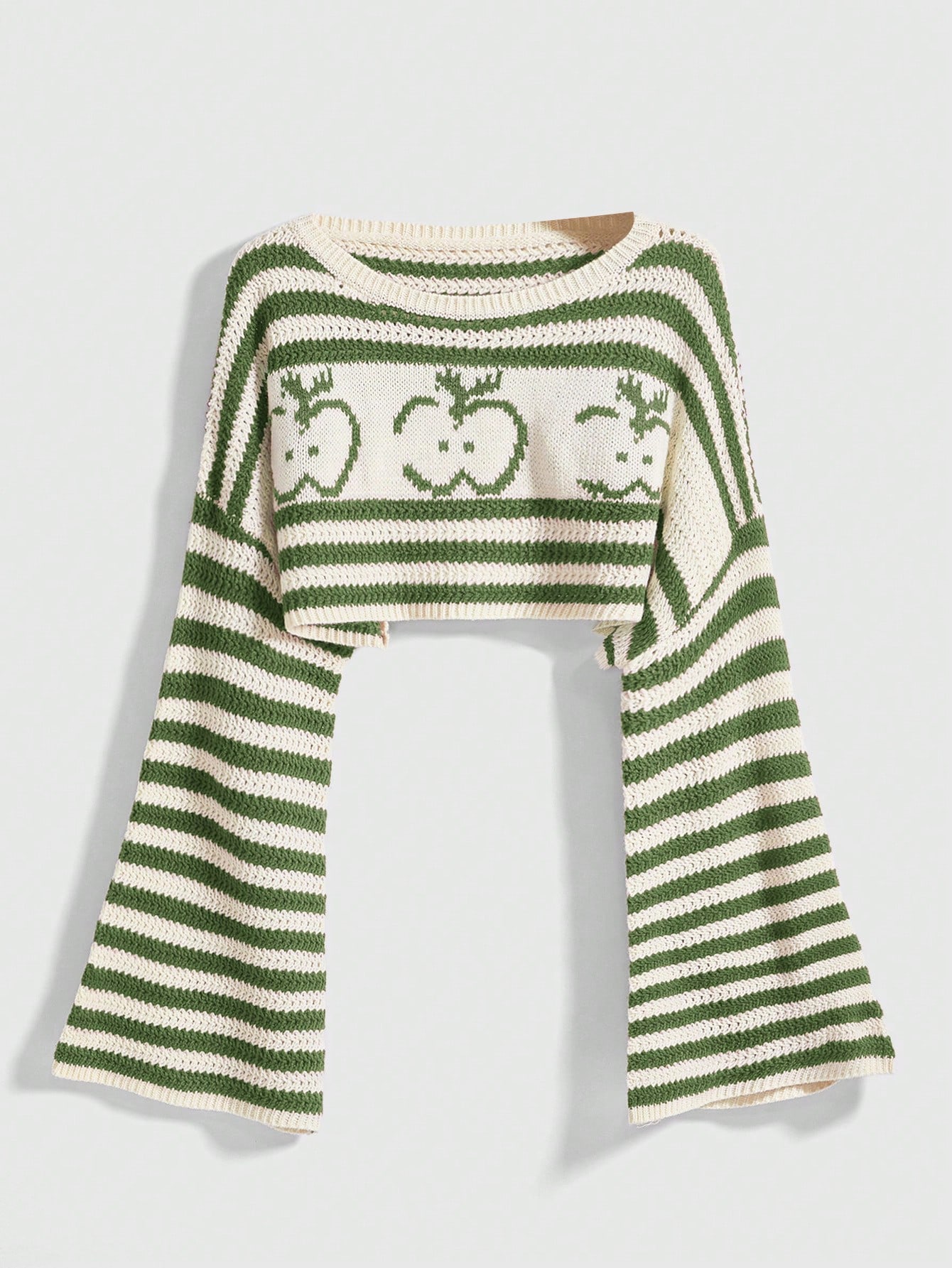 Kawaii Suéter holgado de punto corto con estampado de manzana para tallas grandes