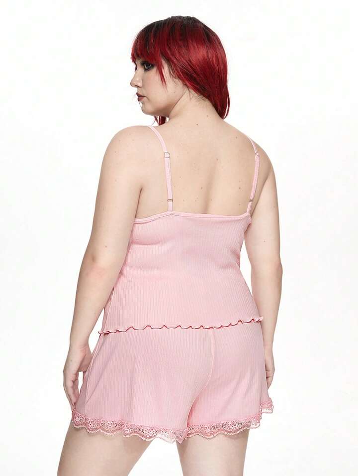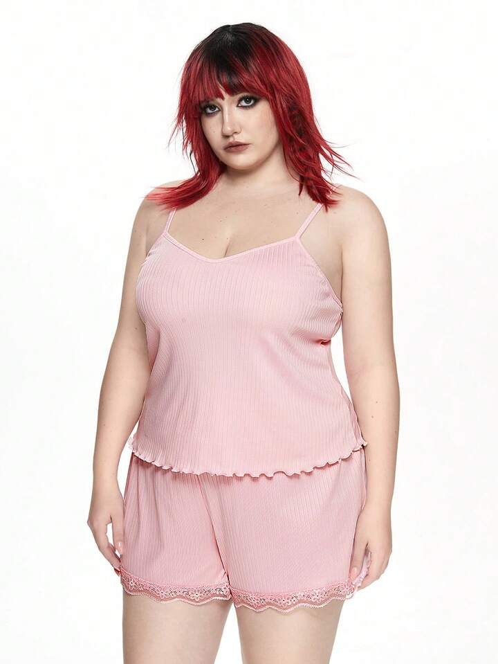 Kawaii Pijama de camisola de encaje de punto acanalado con parche de talla grande