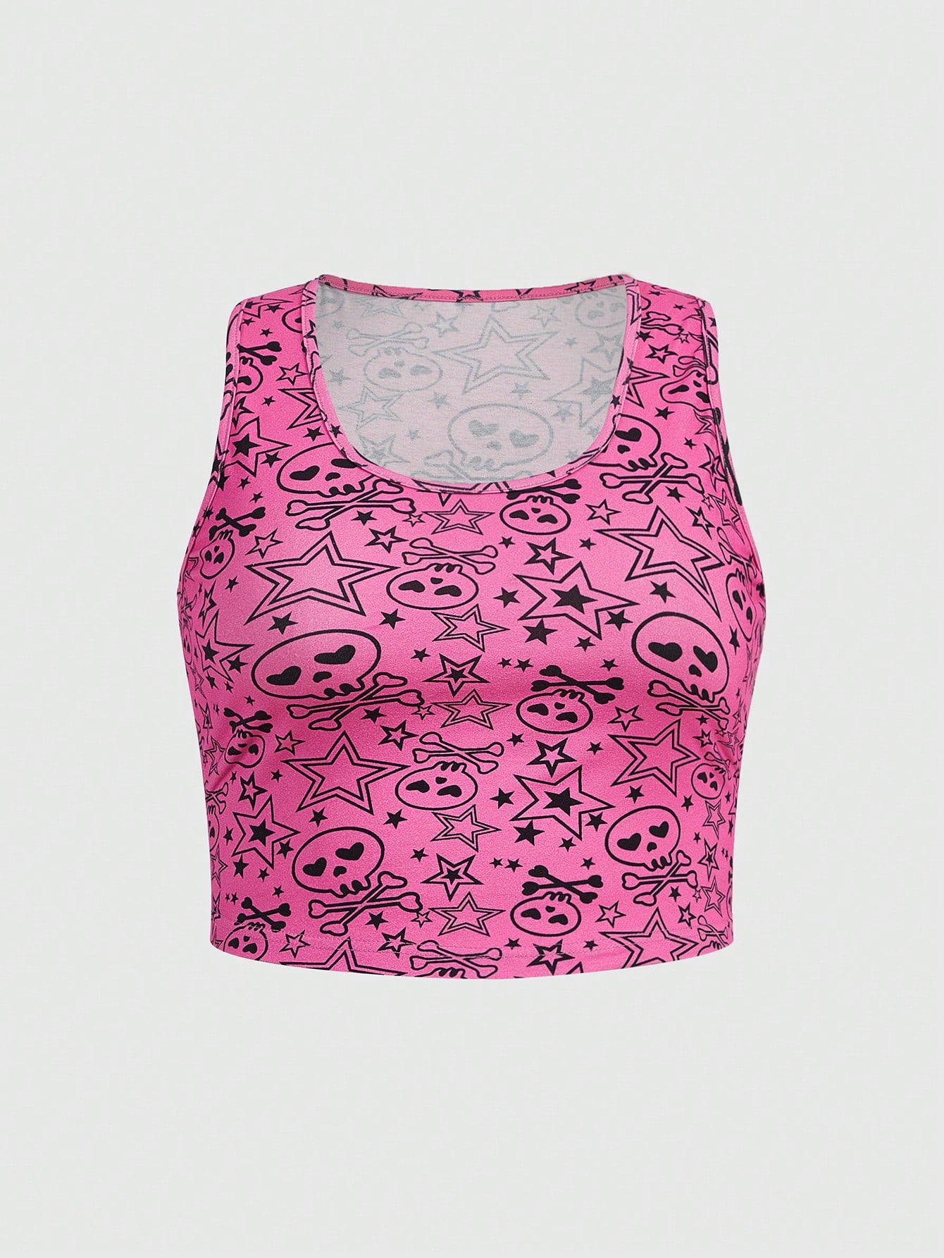 Kawaii Talla grande Top tank de cráneo con con estampado de estrella
