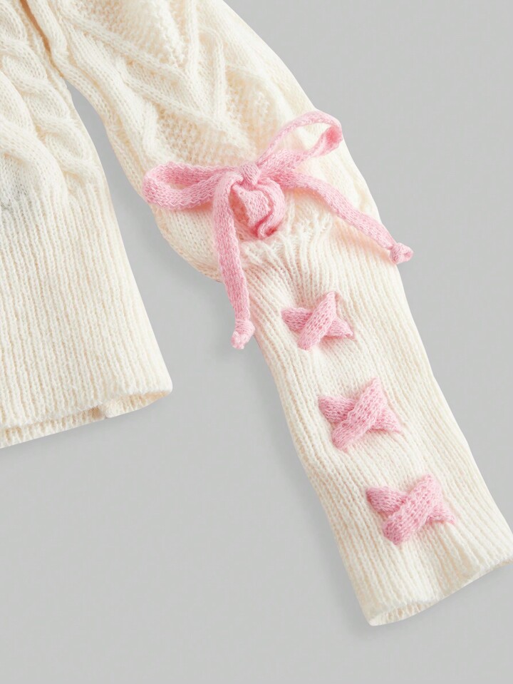 Kawaii Cárdigan de talla grande para mujer con decoración de moño en los puños y mangas farol con hombros descubiertos