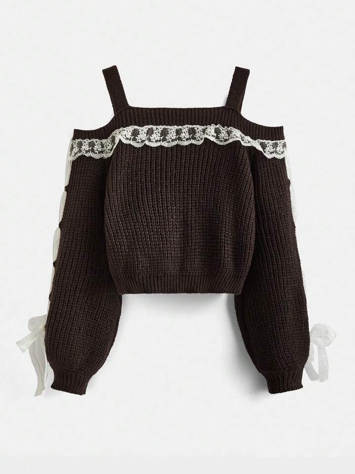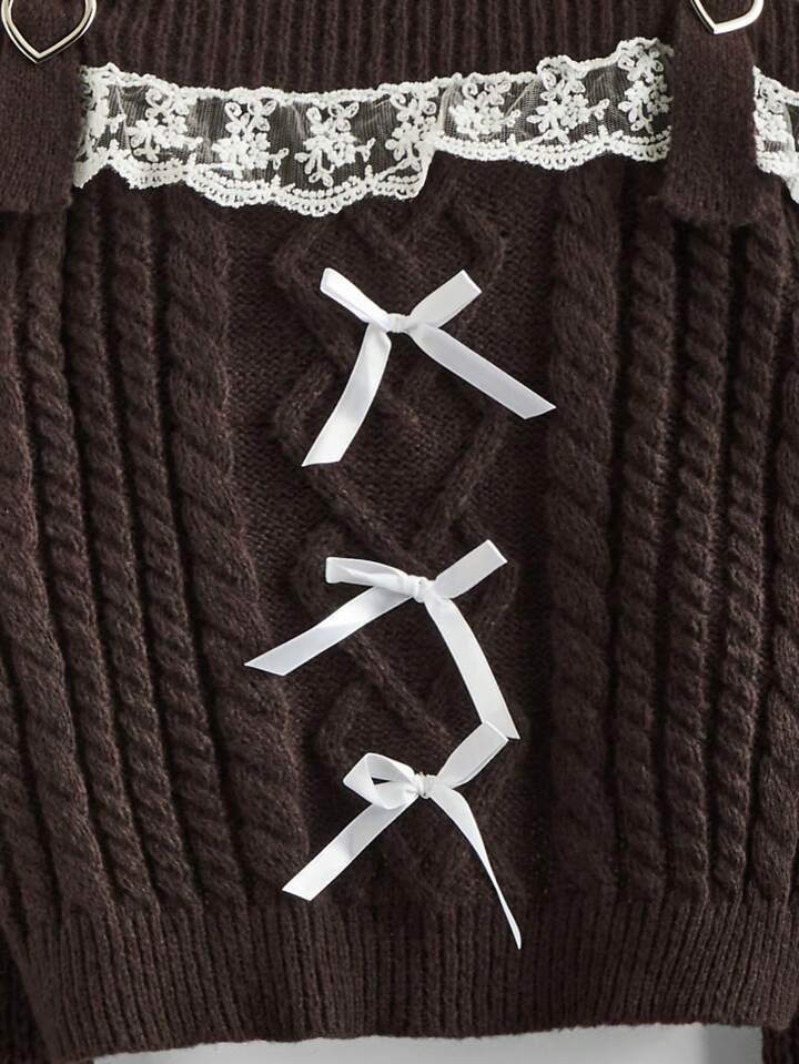 Kawaii Suéter De Hombro Frío Y Talla Grande Para Mujeres Con Decoración De Lazo