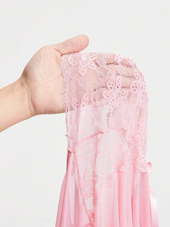 Kawaii Vestido de talla grande para mujer con encaje, malla, parches, lazo y dobladillo asimétrico, estilo Himekaji sexy