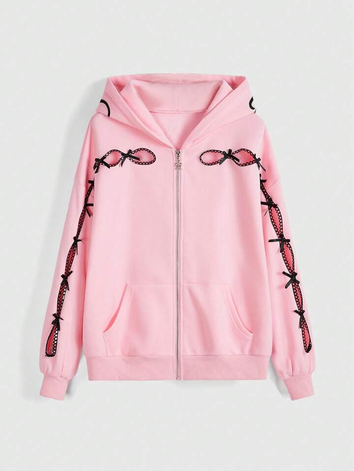Kawaii Sudadera con lazo talla grande estilo Y2K