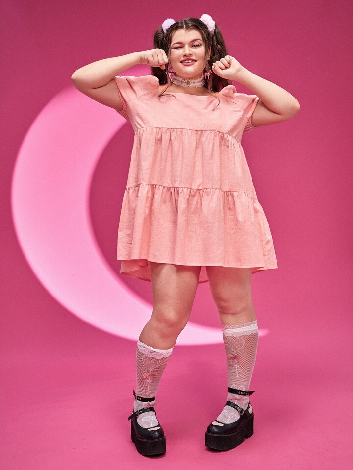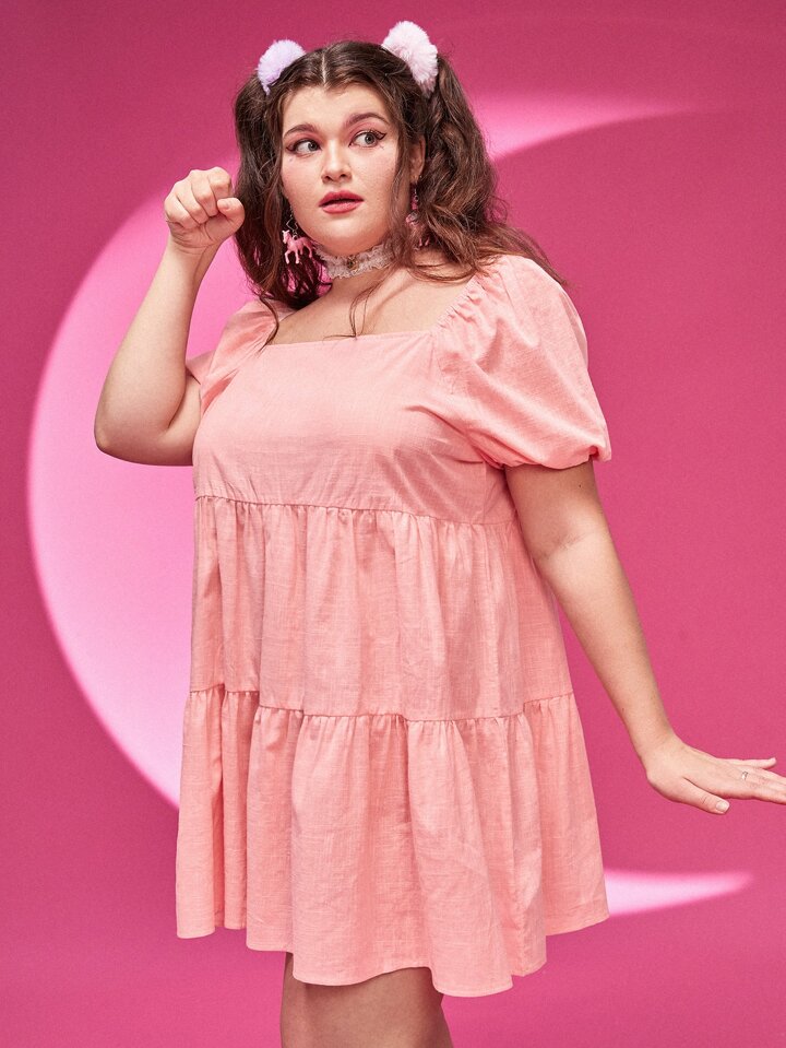 Kawaii Vestidos Tallas Grandes Bajo con volante Liso Dulce