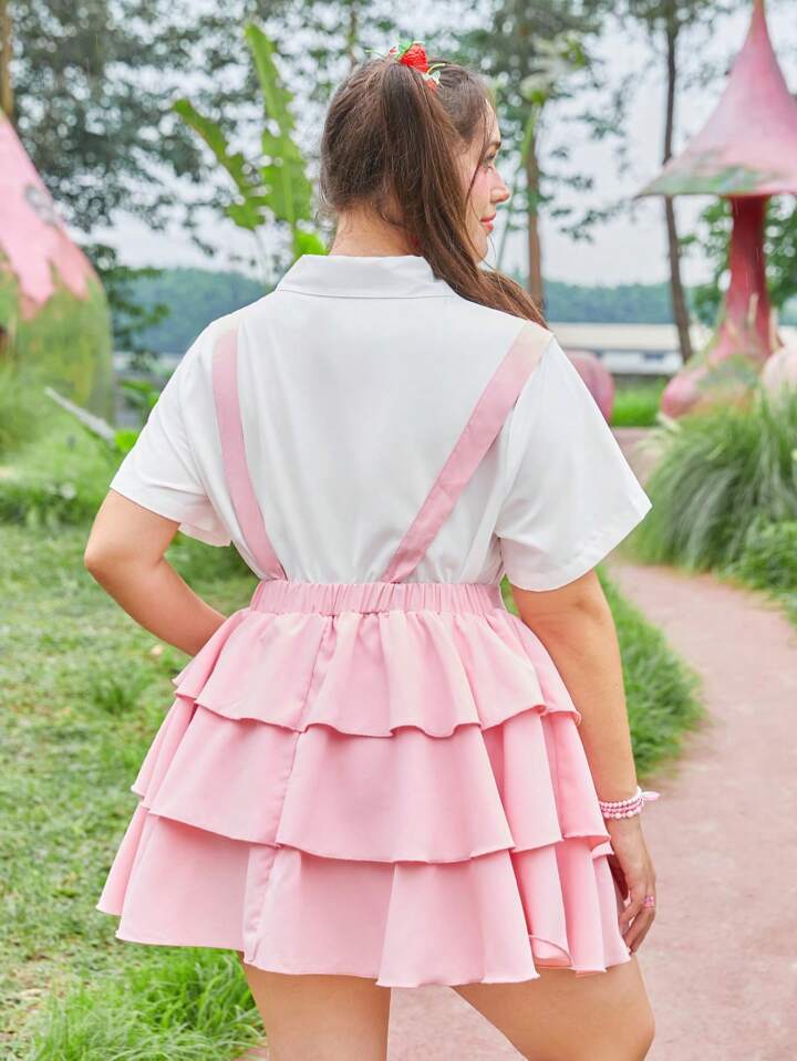 Kawaii Vestido pichi con estampado de fresa ribete con fruncido