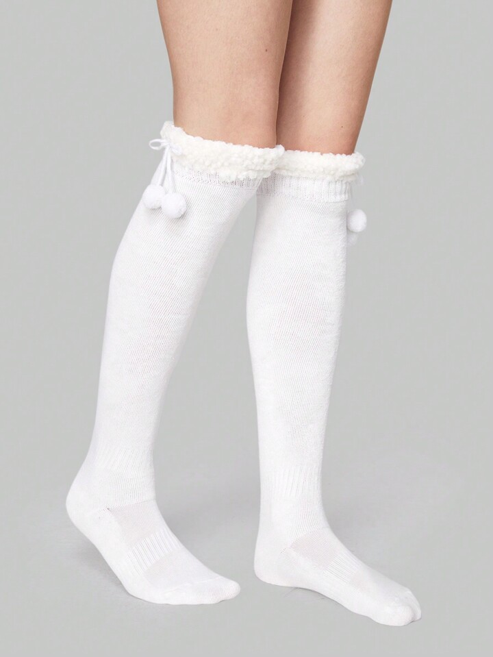 Kawaii Calcetines sobre rodilla con pompón & con diseño de lazo doblado cálido
