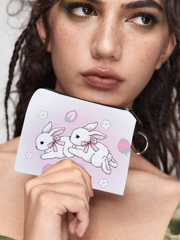 Kawaii Monedero preppy con estampado de conejo de dibujos animados