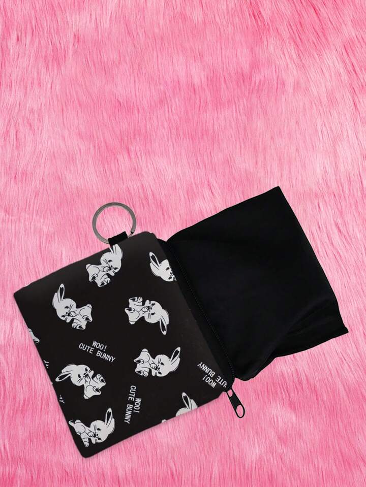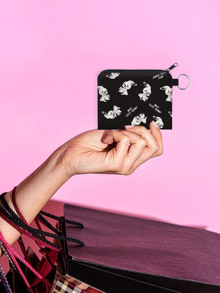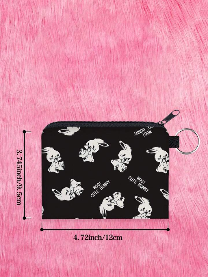 Kawaii Monedero preppy con estampado de conejo de dibujos animados