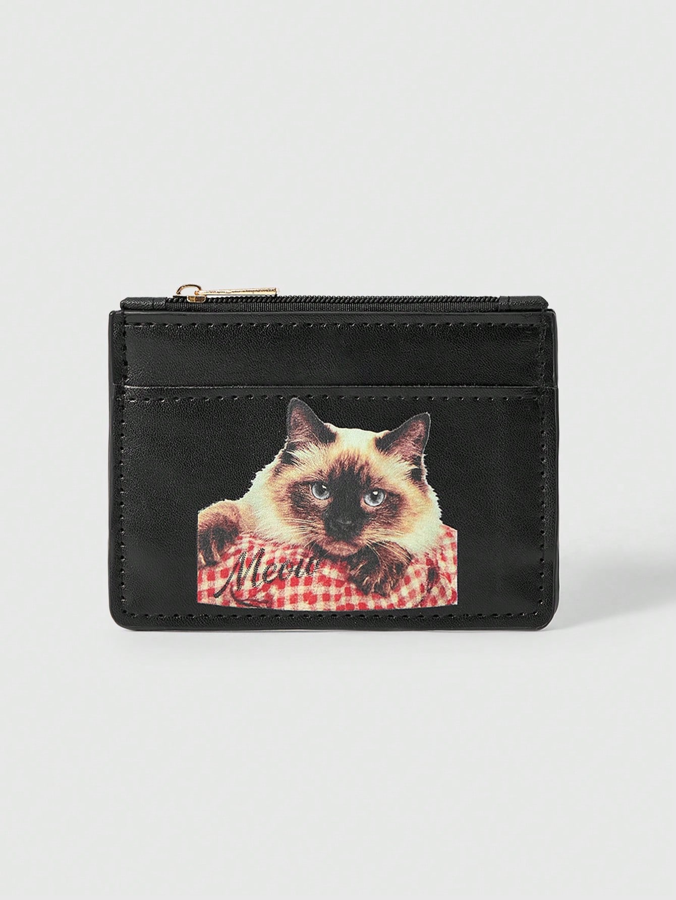 Kawaii Bolso compacto con diseño de cabeza de gato negro puro