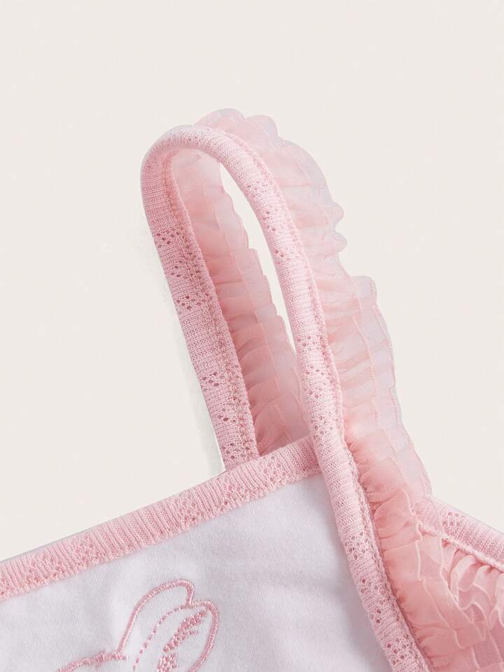 Kawaii Top de tirantes con estampado de conejo ribete fruncido