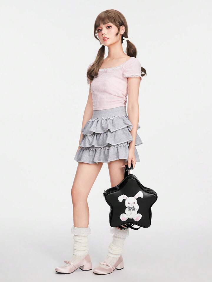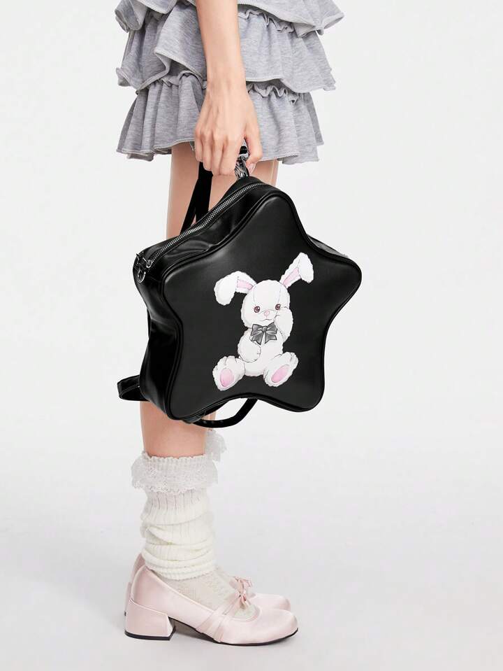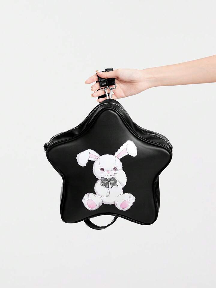 Kawaii Mochila de hombro cruzada con estampado de conejo y estrella de cinco puntas