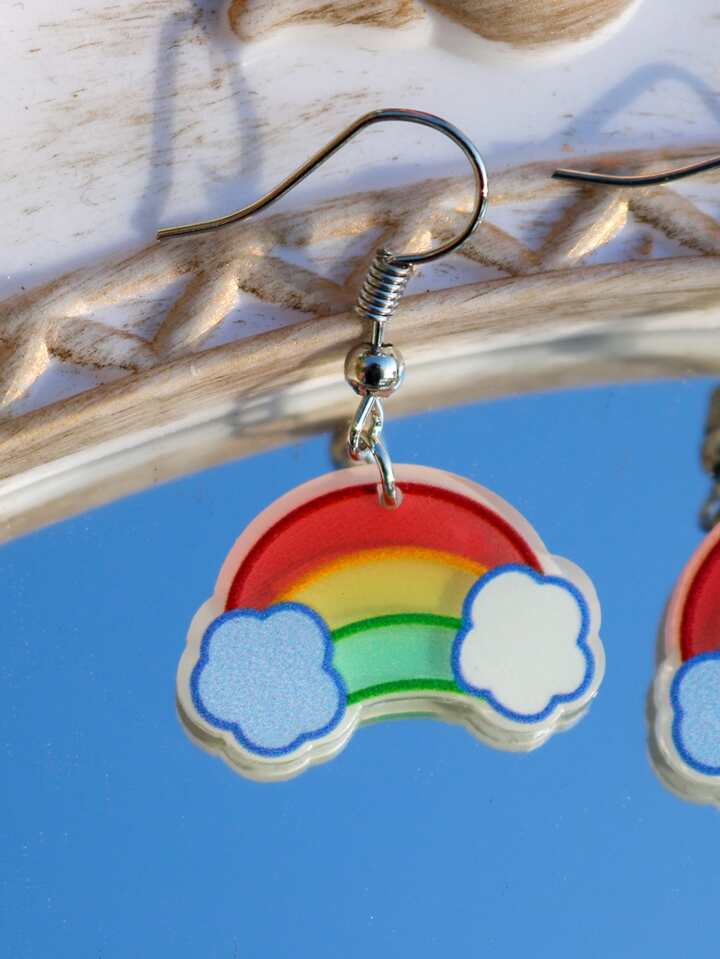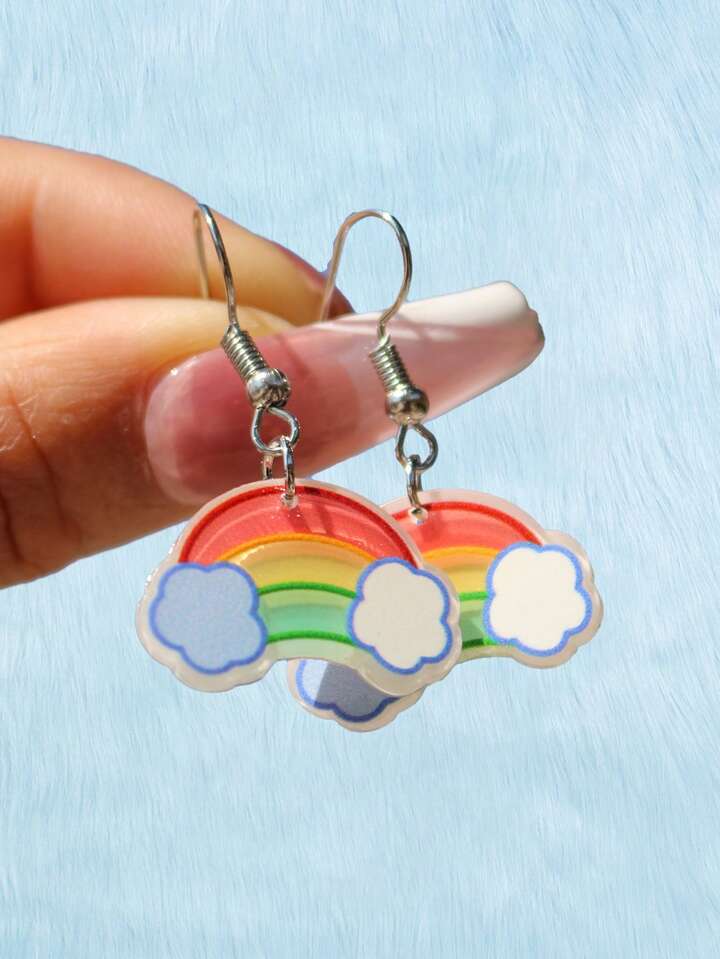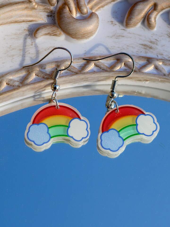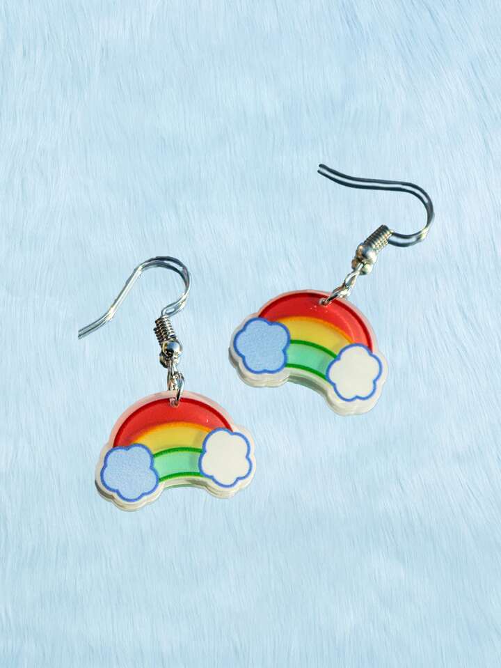Kawaii Pendientes largos de arcoíris