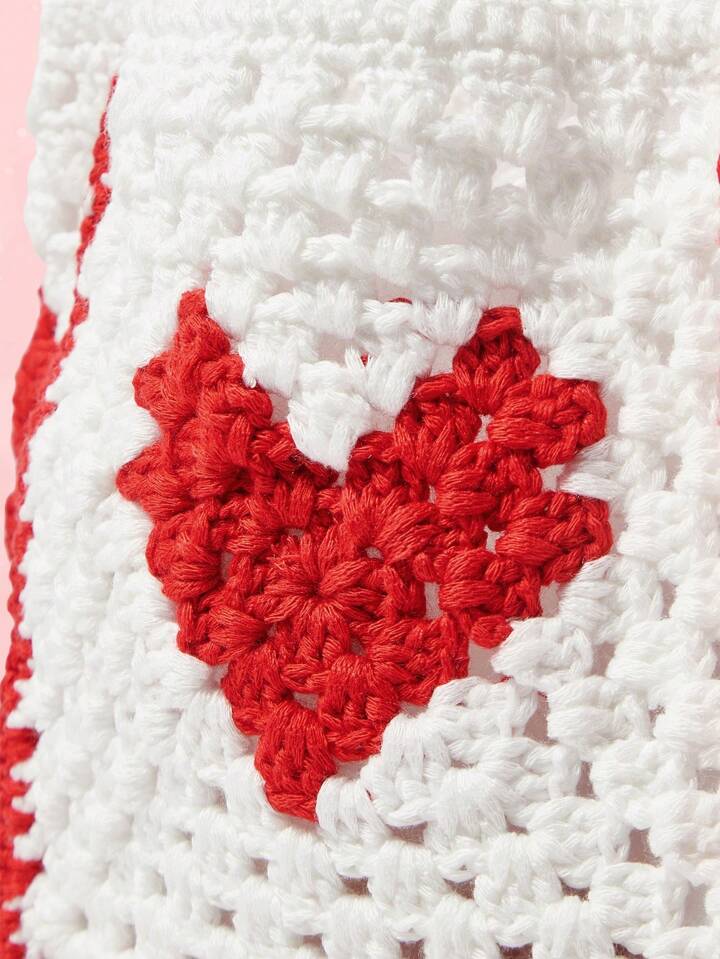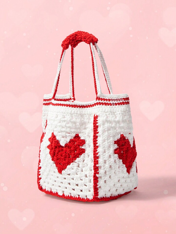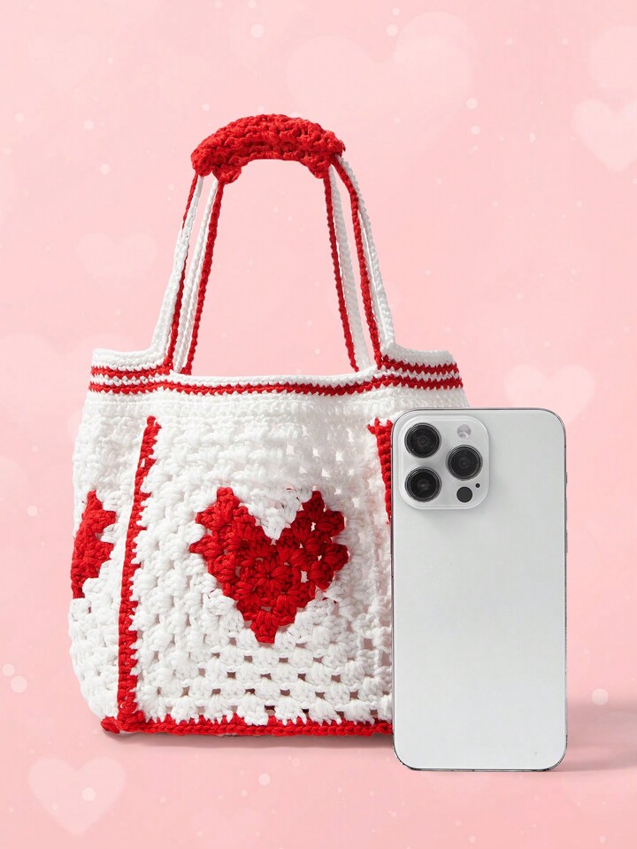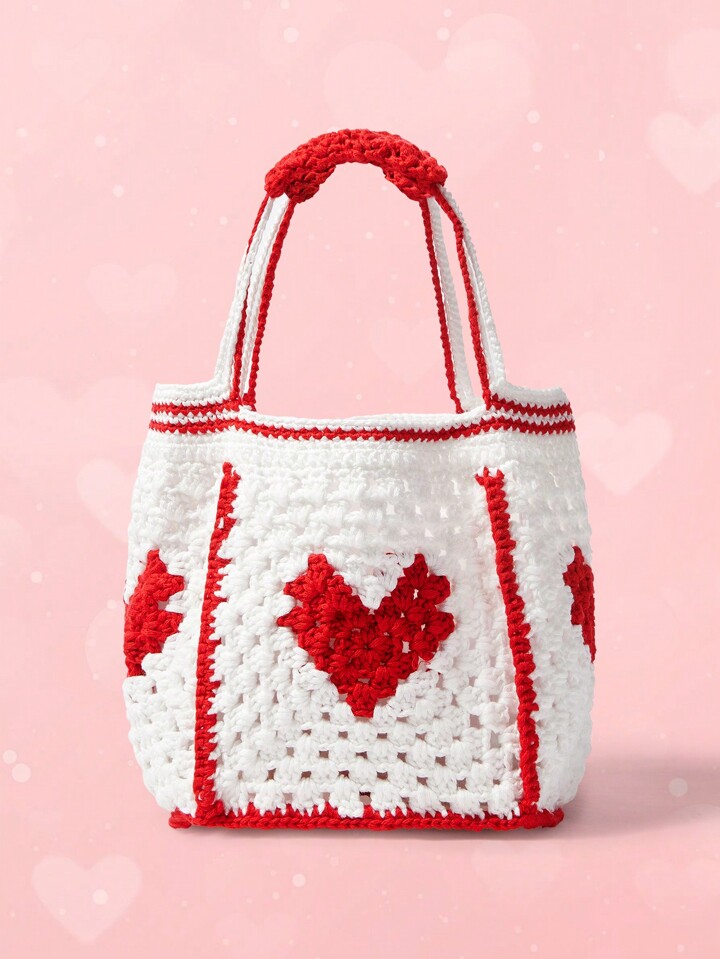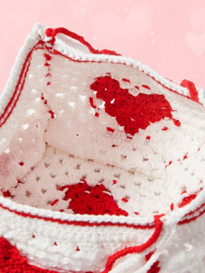 Kawaii Bolso de mano en forma de corazón de dama, color bloque rojo y blanco, para el Día de San Valentín