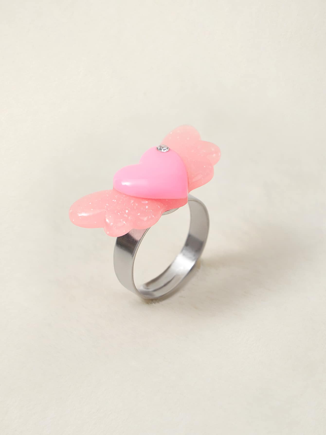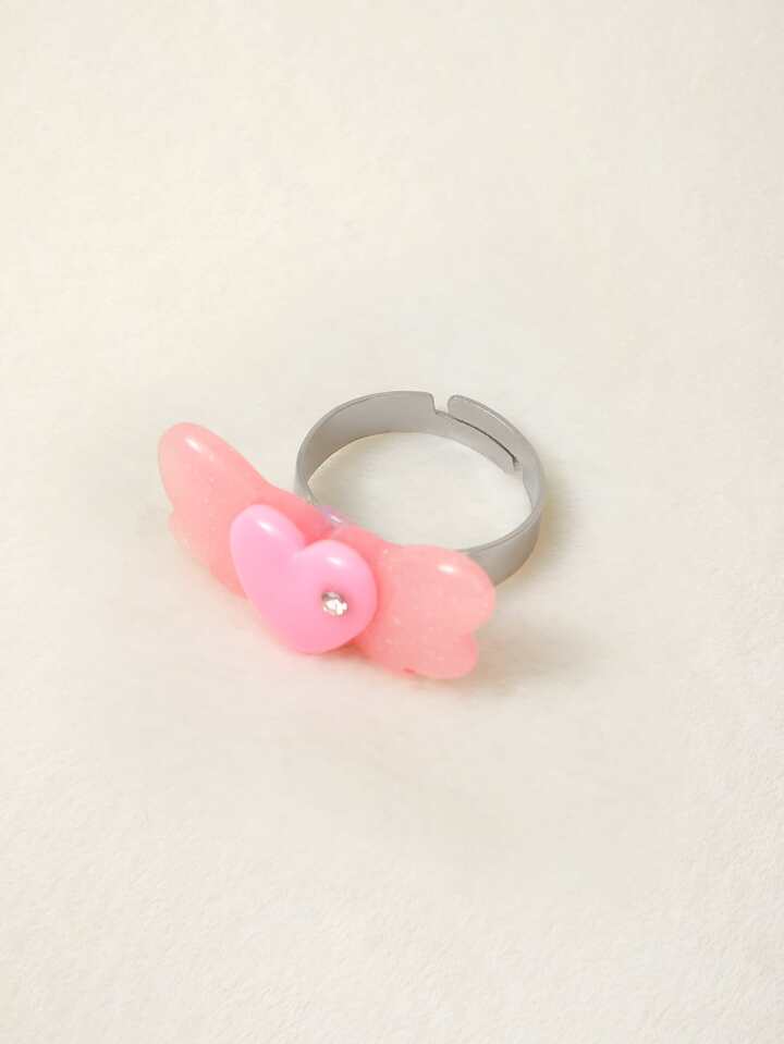 Kawaii Anillo con diamante de imitación & con adorno de corazón