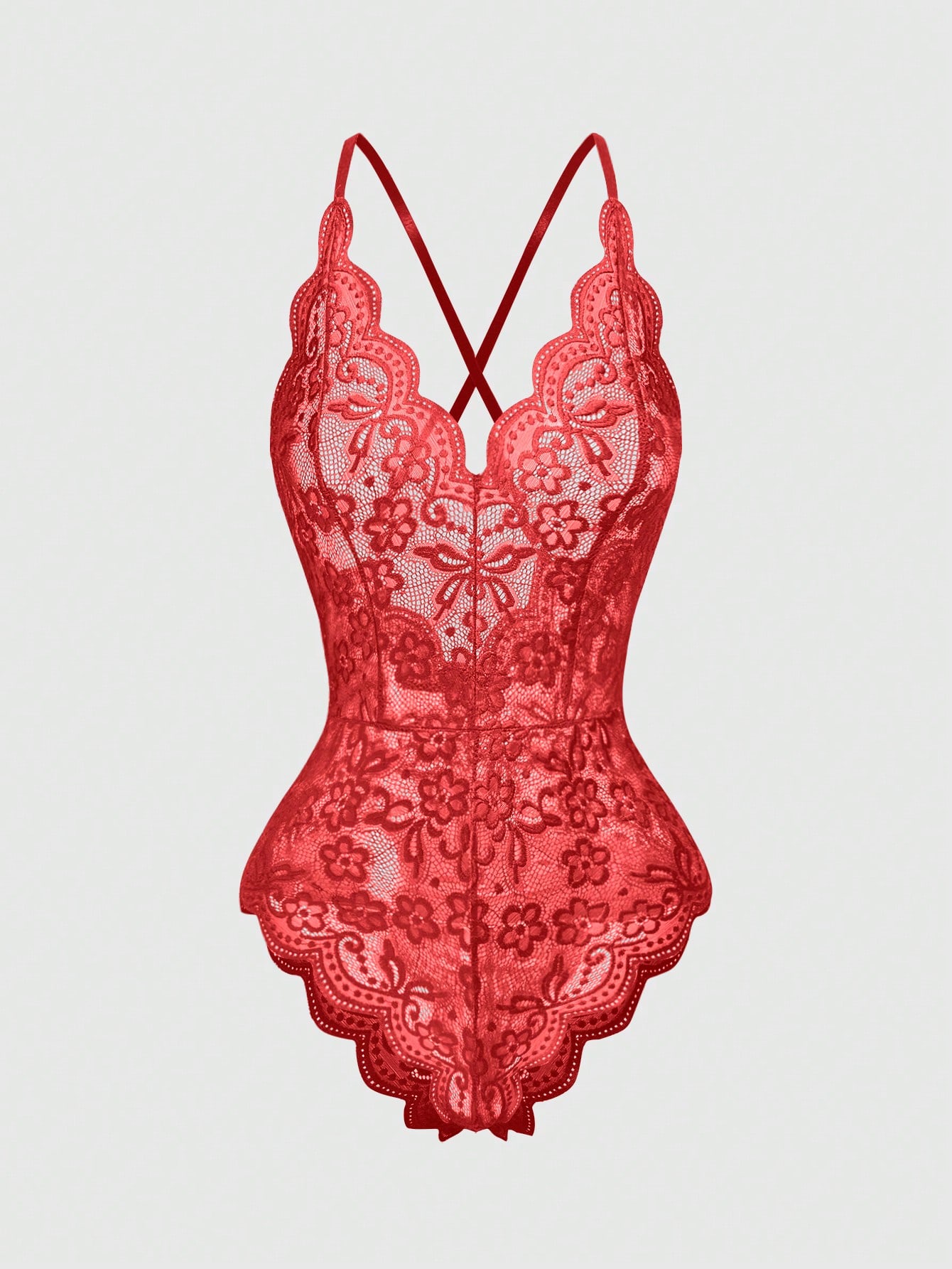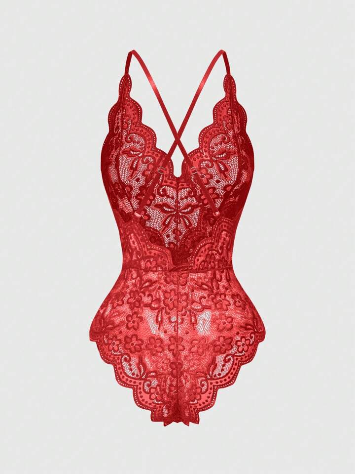 Kawaii Lencería body sensual y romántica con escote en V de encaje, volantes y tirantes ajustables cruzados