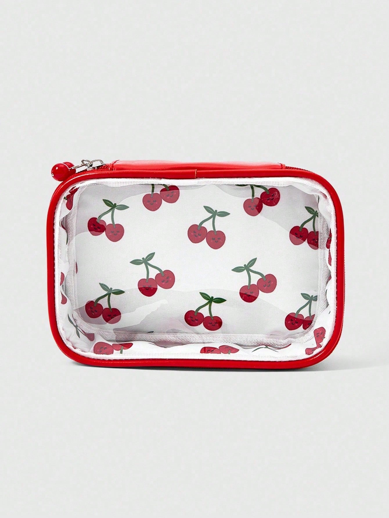 Kawaii Bolsa de maquillaje linda con bordado de lazo en tela de satén