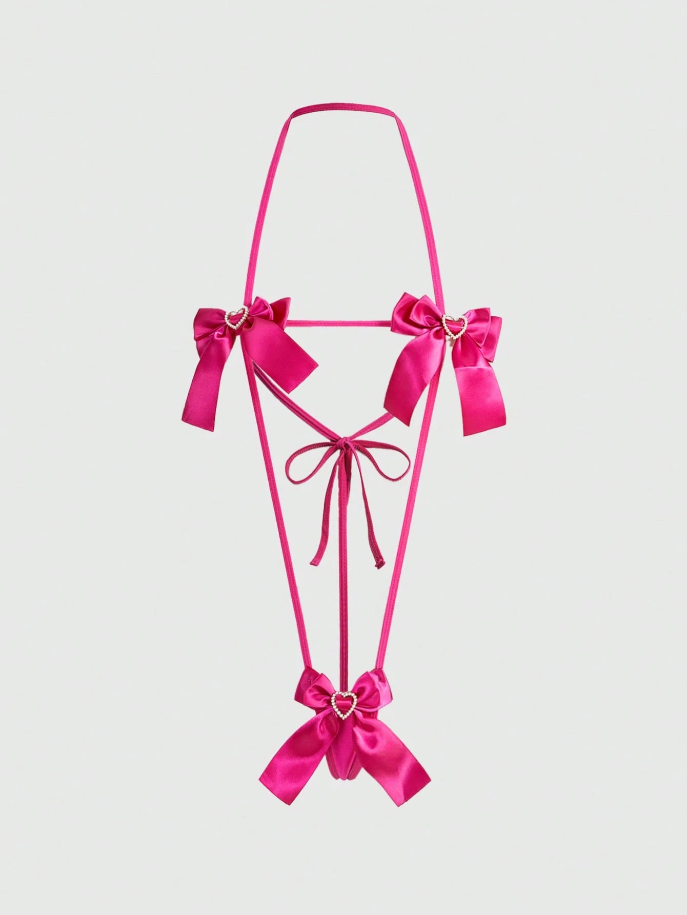 Kawaii Body sexy con lazo, corazón, strass y encaje calado para mujeres
