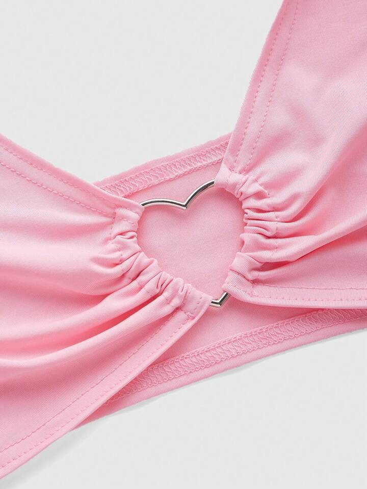 Kawaii Camiseta de tirantes finos con lazo de corazón de metal y nudo para mujeres, sexy, para vacaciones