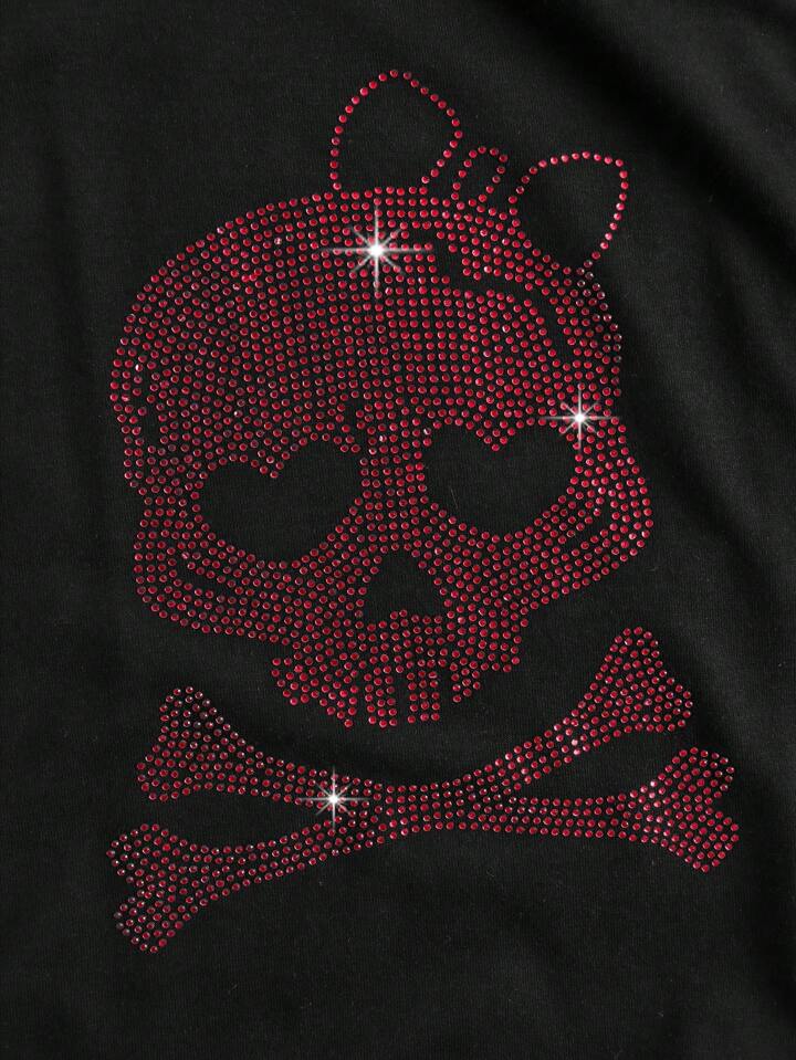 Kawaii Parte superior de tirantes con estrás con diseño de calavera