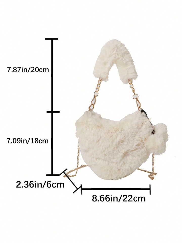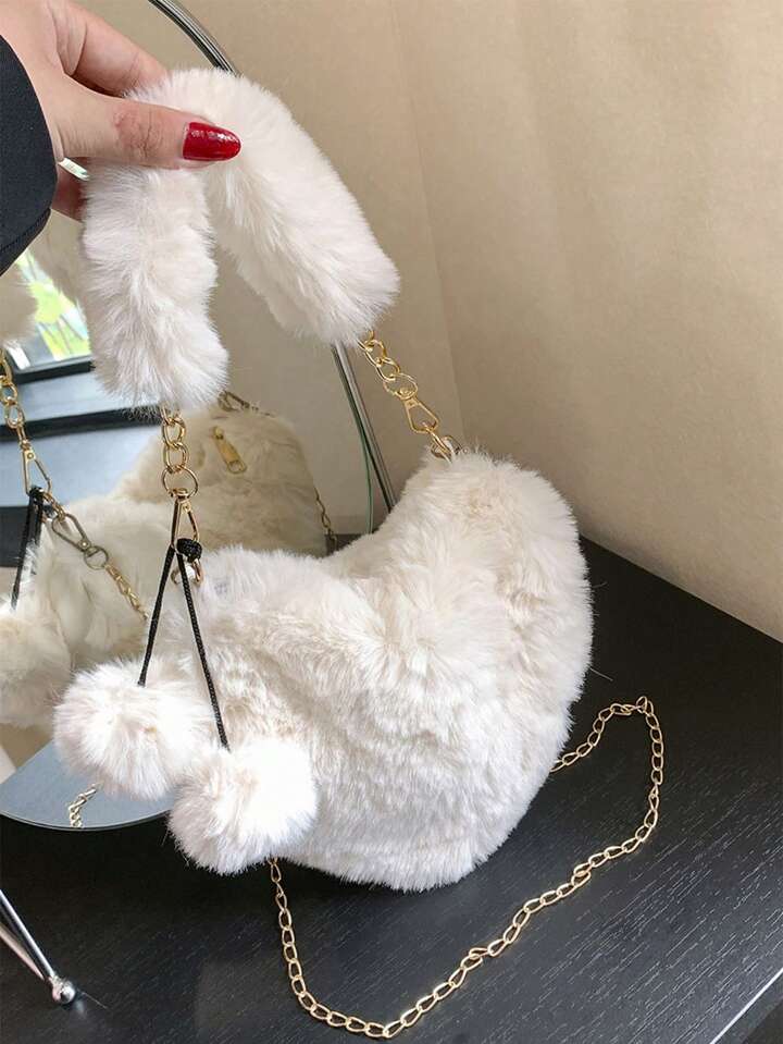Kawaii Bolsa creativa pequeño casual con diseño de pompón con diseño de corazón mullido para el trabajo