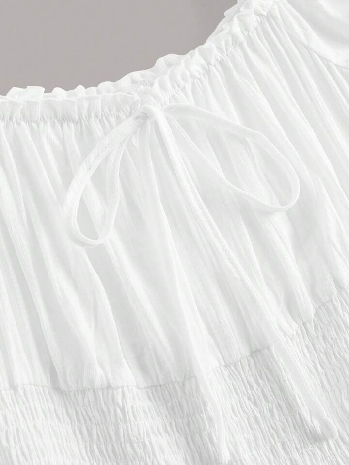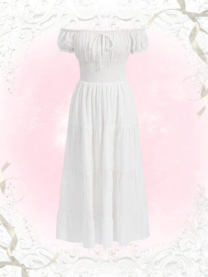 Kawaii Vestido unicolor de hombros descubiertos bajo con fruncido