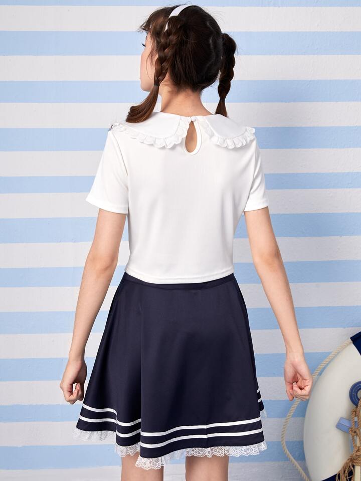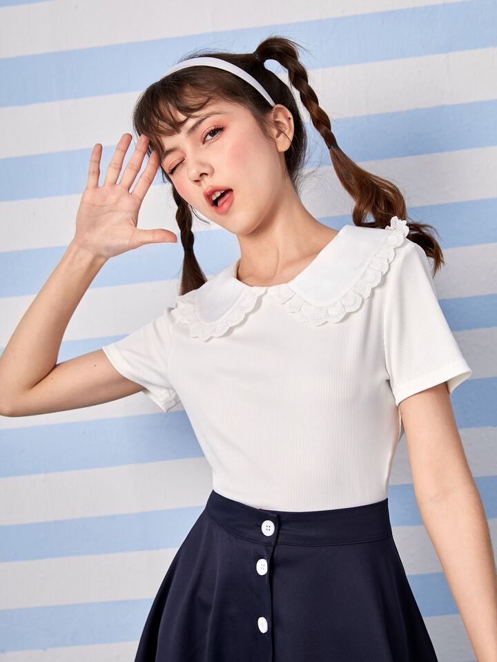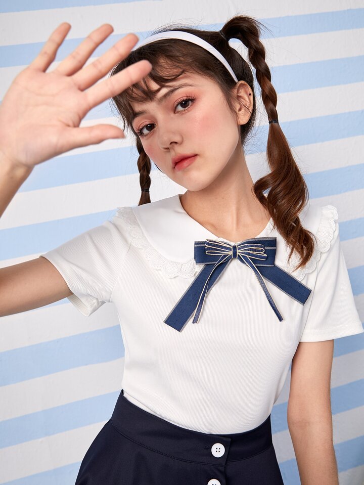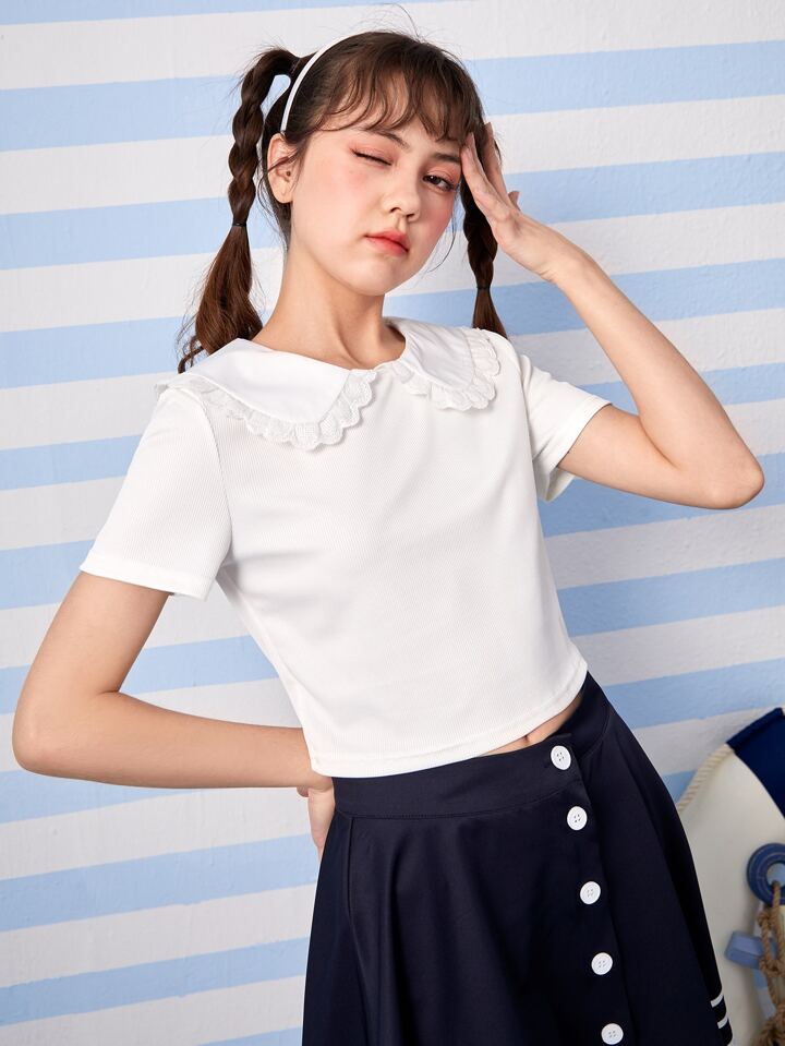 Kawaii Camiseta crop unicolor de cuello bobo sin lazo