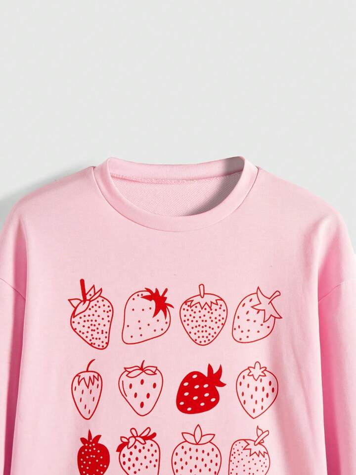 Kawaii Sudadera Con Cuello Redondo Y Manga Larga Con Gráfico De Fresa