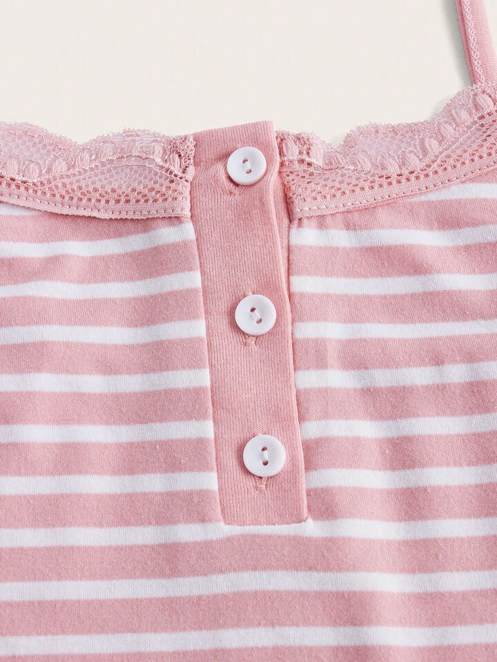 Kawaii Top de tirantes con contraste de rayas y encaje, escuela