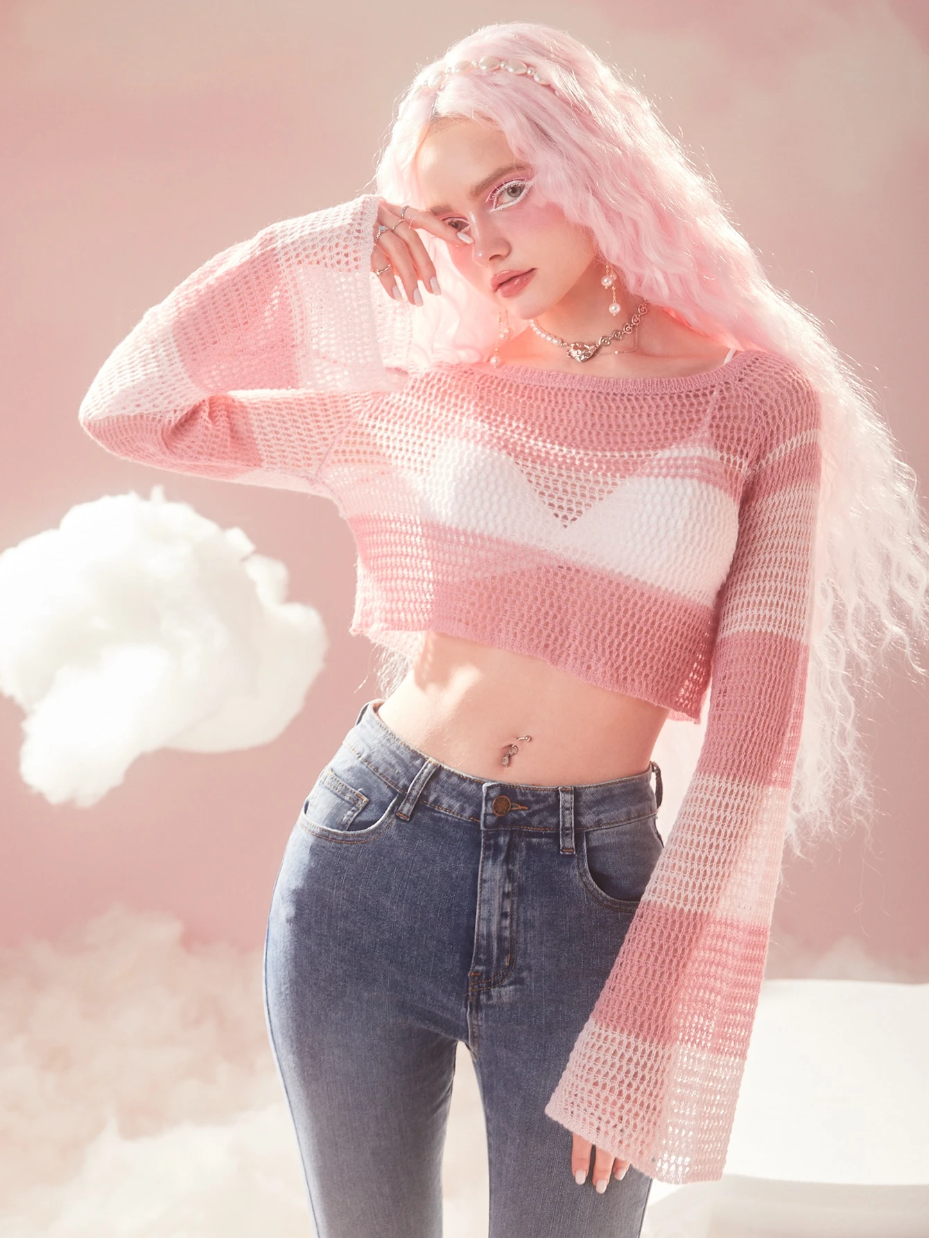 Kawaii Jersey A Rayas Con Mangas En Forma De Campana Y Corte Corto