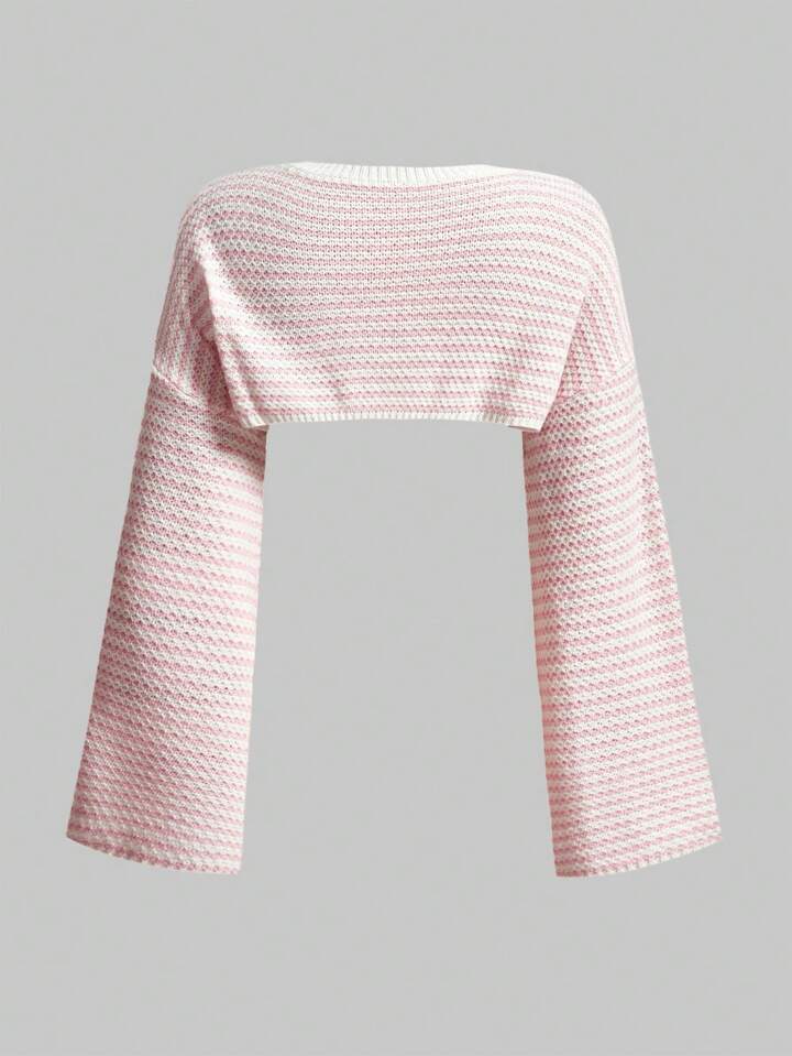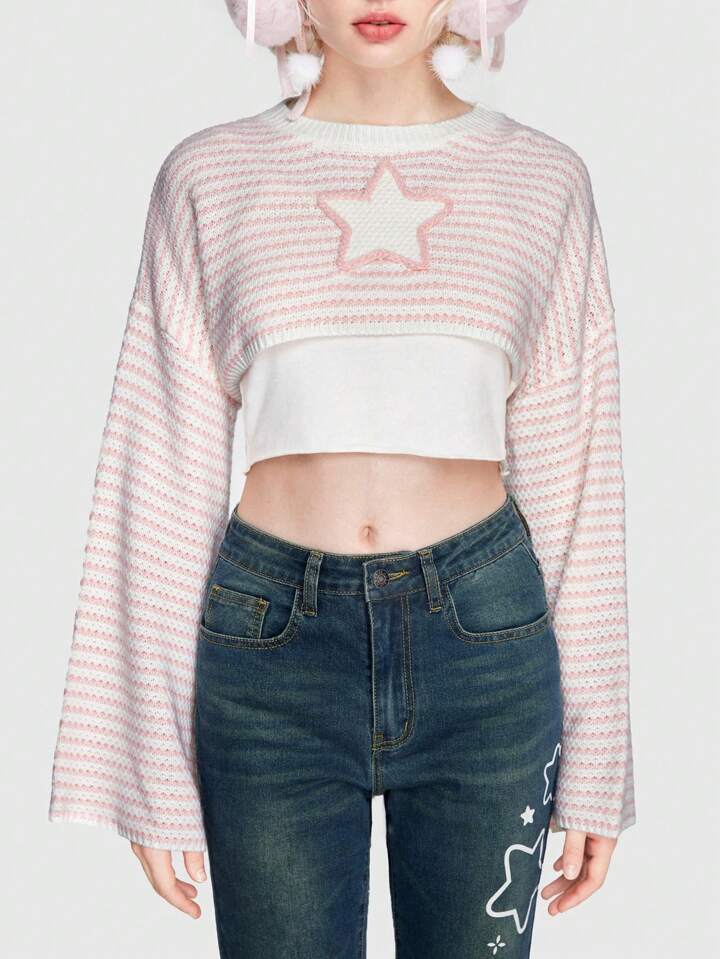 Kawaii Jersey crop con patrón de rayas de hombros caídos