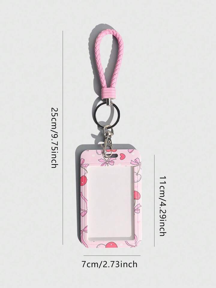 Kawaii Estilo N°: 1479582 Portaidentificación con diseño de lazo, cereza y corazón, regreso a la escuela, 1 pieza