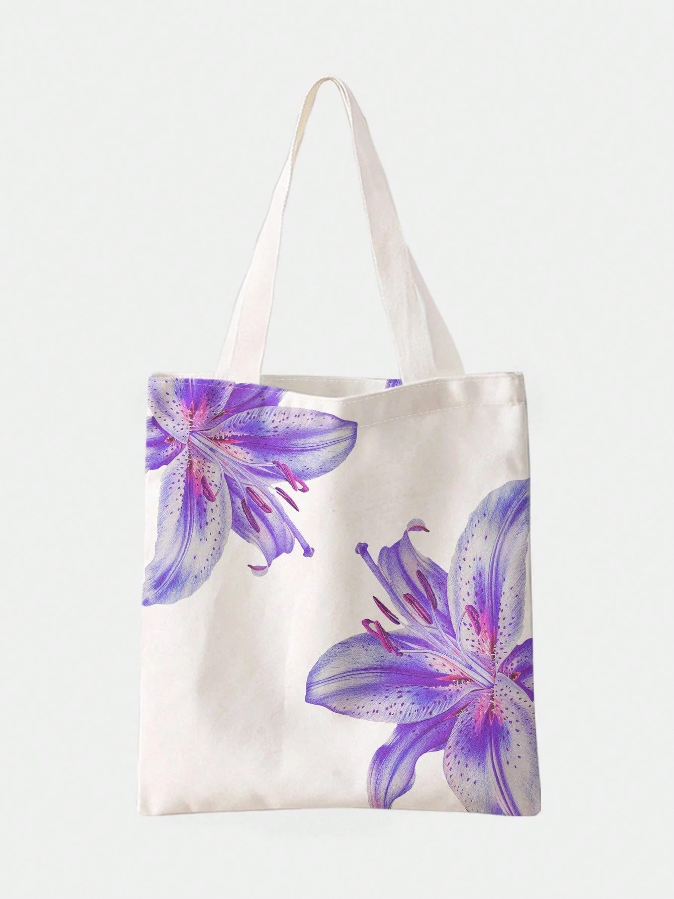 Kawaii Bolsa de tote casual/de trabajo con estampado floral de doble cara para vacaciones