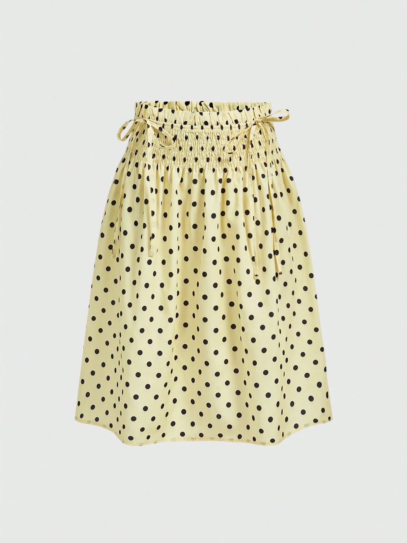 Kawaii Falda con lazo y lunares amarillo mostaza, estilo vacaciones para mujeres
