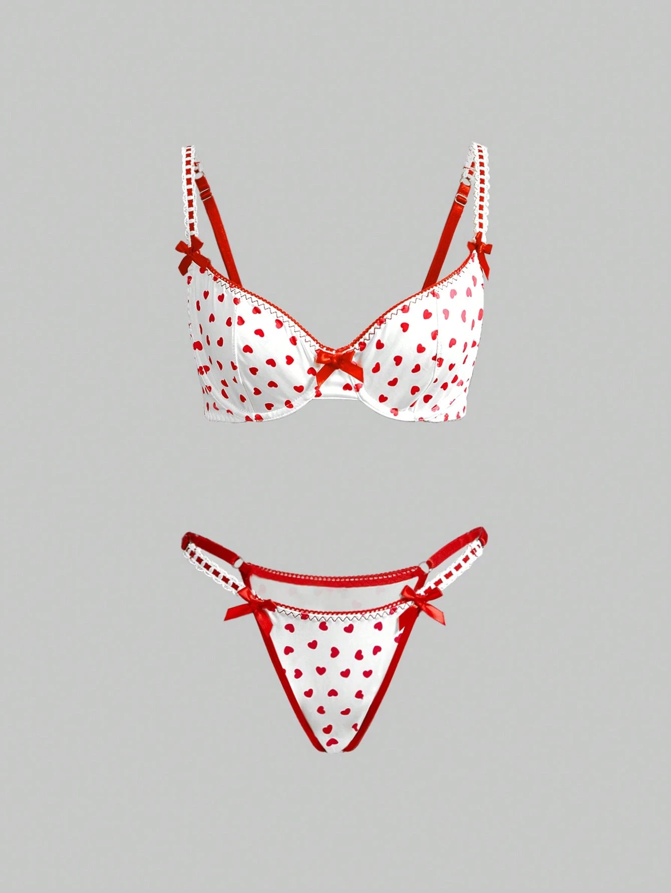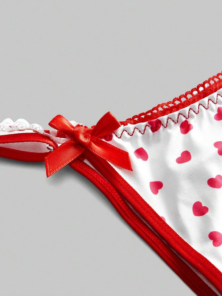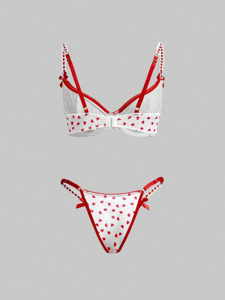 Kawaii Conjunto de lencería con sujetador con aros y tanga, diseño lindo y dulce de muñeca para el Día de San Valentín